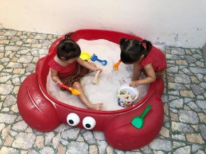 มุมเล่นทราย เป็นของเล่นที่มีประโยชน์ค่ะ ของเล่นปลายเปิด สร้างจินตนาการสำหรับเด็ก วิธีเล่นทรายของเด็กมีเยอะมากกกกกก แต่จุดนี้สำคัญคือหลังเล่นเสร็จต้องปิดมิดชิดค่ะ กันสัตว์อันตรายมาอาศัย หลังเล่นเสร็จคุณพ่อคุณแม่ต้องตรวจทุกครั้งค่ะ รวมถึงก่อนเล่นด้วยค่ะ ดังนั้นจะไม่อนุญาตให้เปิดเล่นเอง ถ้าเด็กๆอยากเล่นทรายจะเดินมาให้ช่วยยกฝาเปิดให้ค่ะ