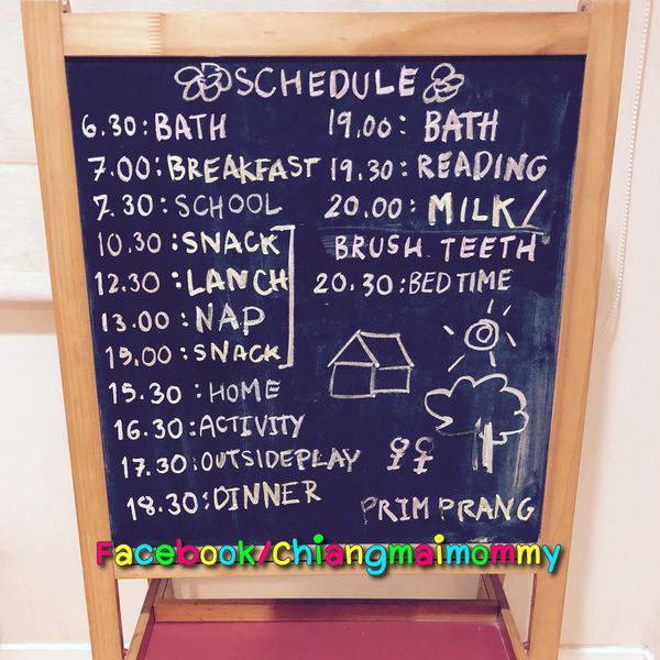 #กระดานตารางกิจกรรม อันนี้ขึ้นกับเวลาสะดวกของลูกและพ่อแม่ค่ะ เป็นการกำหนดวินัยคร่าวๆ ว่ากิจวัตรประจำวันคืออะไร ส่วนหนึ่งเชื่อว่ามนุษย์ทุกคนมีนาฬิกาชีวิต หากทำอะไรซ้ำๆเดิมๆ ร่างกายจะรู้เวลาอัตโนมัติค่ะ การต่อต้านจะน้อยลงจากเดิม ทำบ่อยๆให้เกิดความเคยชินค่ะ(ในรูปคือตอนนี้ไป รร. อัพเดตตามช่วงอายุค่ะ รูปเก่าๆสมัยขวบ สองขวบหาไม่เจอค่ะ)