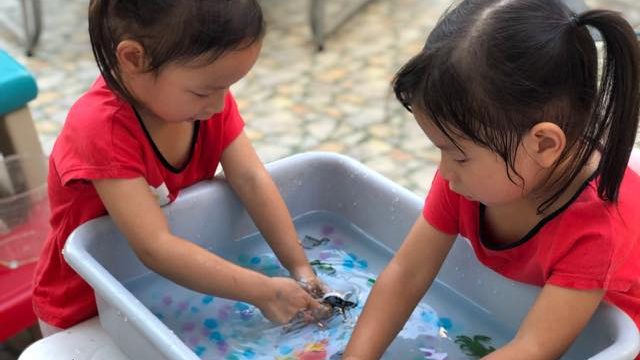เด็กๆเอามาเล่นต่อ (ถ้าทิ้งคือเอาไปเป็นปุ๋ยต้นไม้ได้ค่ะ) แช่น้ำทิ้งไว้ 24 ชม. ก็ขยายตัวเม็ดใหญ่ขึ้น เทใส่กะบะ แต่…รู้สึกว่าไม่พอ กะบะใหญ่ไป ฮาๆ ก็เติมน้ำเพิ่ม ใส่โมเดลสัตว์น้ำ จากที่อารมณ์ไม่ดี กลายเป็นเด็กร่าเริงทันทีค่ะ 😆