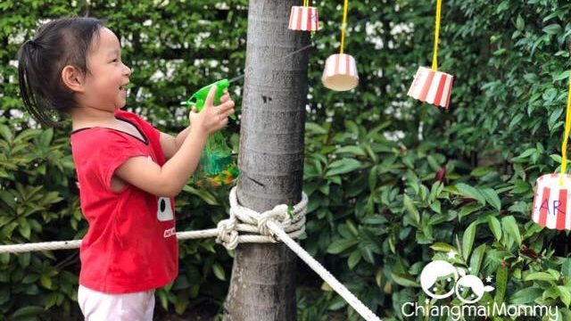 แล้วแขวนไว้ ให้ลูกหัดอ่านออกเสียง แล้วใช้กระบอกฉีดน้ำยิงให้โดนคำนั้น เกมนี้สนุกอีกแล้ว แถมยังได้พัฒนากล้ามเนื้อมัดเล็กให้เด็กๆค่ะด้วยค่ะ กะระยะยากมากแต่สนุกค่ะ ⚡️