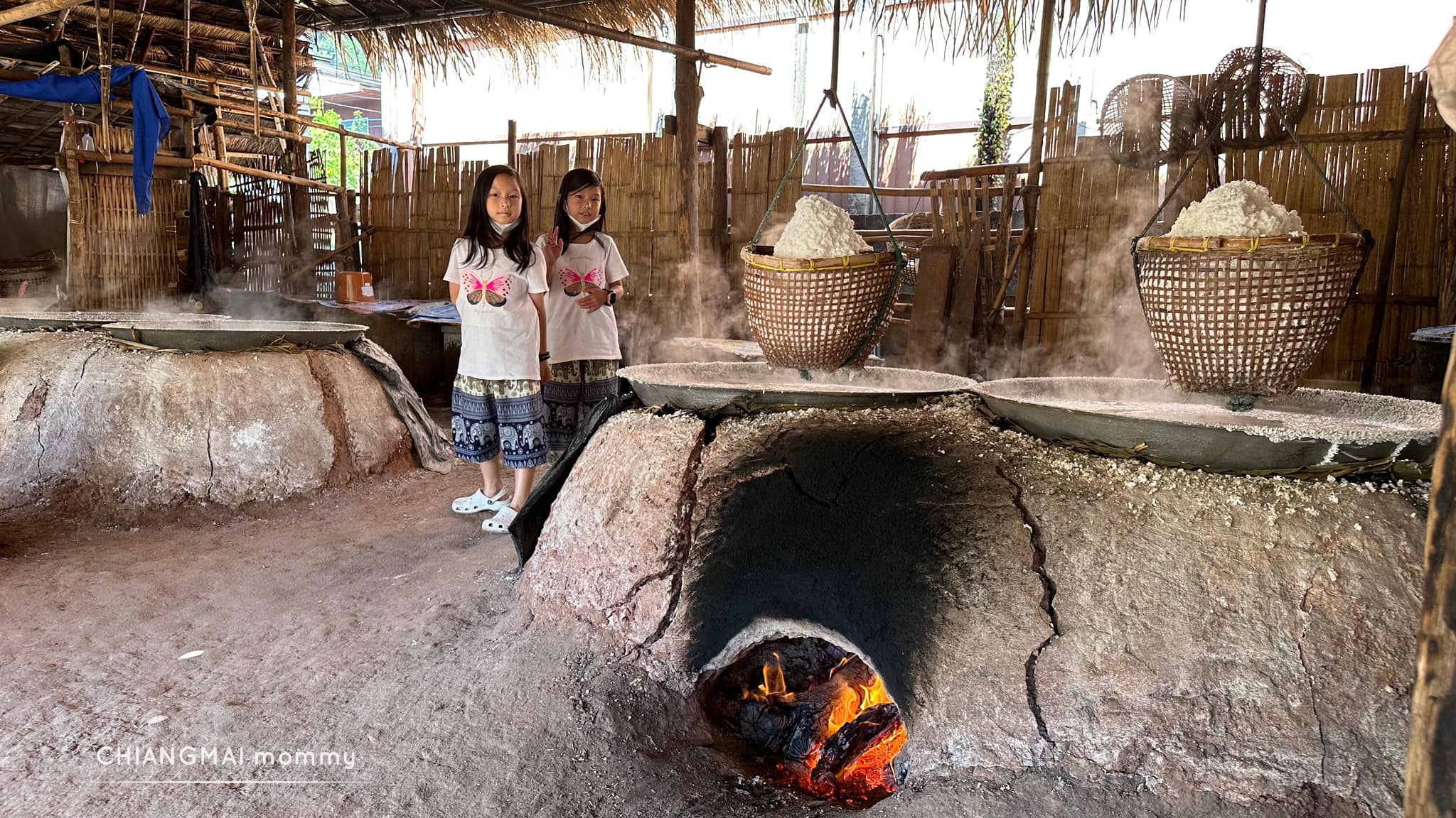 คนขายก็อธิบายว่าที่นี่สันนิษฐานว่าเคยเป็นทะเลมาก่อน น้ำที่ดูดขึ้นมาจึงเค็มมีเกลือปนแต่วิธีการผลิตแบบนี้จะใช้ความร้อนสูงโดยการต้มเพื่อระเหยน้ำออกไปซึ่งจะทำให้ธาตุไอโอดีนหายไปด้วย เรียกว่าเกลือสินเธาว์ จะไม่เหมือนกับเกลือทะเลที่ใช้ความร้อนจากแสงแดด เกลือที่นี่เลยเป็นผงละเอียด ส่วนดอกเกลือที่คนขายอธิบายน่าจะคือผลึกโซเดียมที่จะลอยออกมาตอนต้มซึ่งต้องใช้ไฟอ่อนๆค่อยๆเคี่ยว 4-7 วันจึงจะเกิดผลึกดอกเกลือบนผิวหน้าหม้อต้ม แม่ฟังแล้วก็ตื่นเต้นมาก แต่ลูกกับปะป๊าผิดหวังเล็กน้อย บอกว่ามีแค่เนี๊ยยยย!!! 555+ เอาน่ามันของโบราณเชียวน้าาาา งั้นซื้อเกลือสปากลับไปด้วย ไหนๆก็ขับรถมาตั้ง 2 ชั่วโมงล่ะเนาะ ![]()