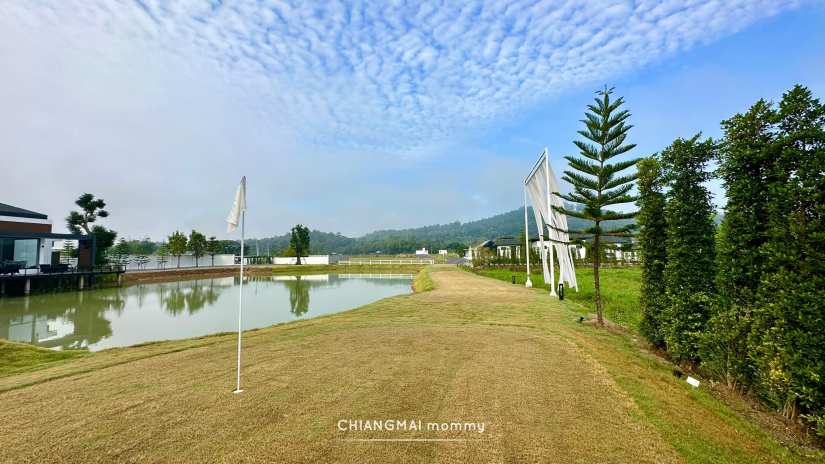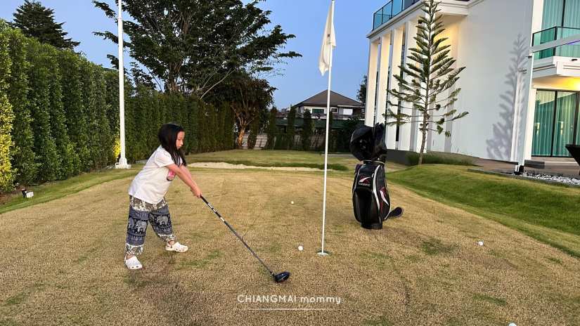 ที่สำคัญมีสนามชิพกอล์ฟ ถนนปั่นจักรยาน เนี๊ย!!ป๊าไม่บอกจะได้เอาไม้กอล์ฟของเด็กๆมาด้วย จริงๆเค้ามีให้ยืมนะคะ แต่เป็นไซส์ผู้ใหญ่ค่ะ ส่วนจักรยานก็มีให้ยืมค่ะ ตกกลางวันมีขนมมาเสิร์ฟให้ด้วย ถูกใจเด็กๆมากค่ะ