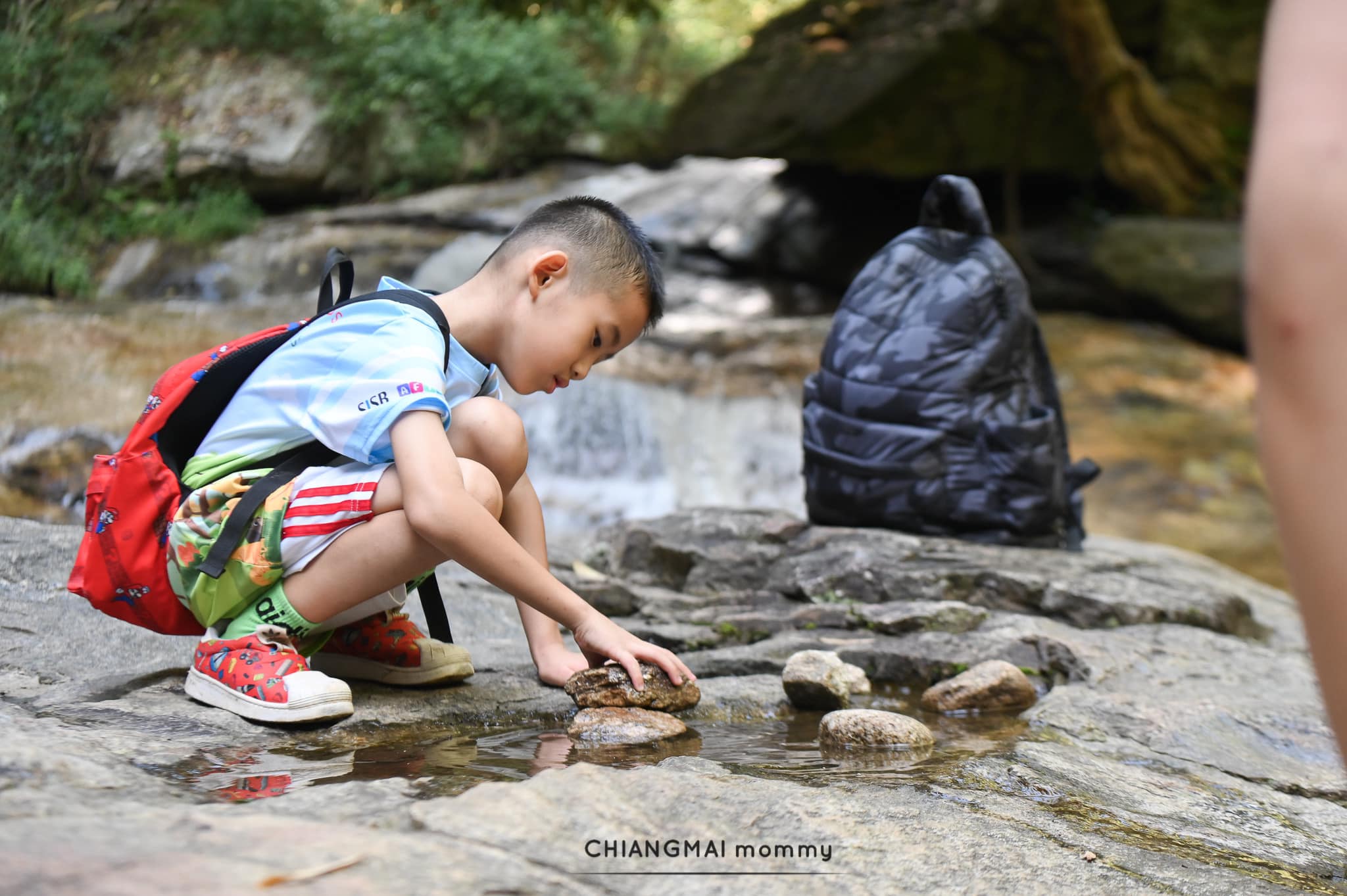 ระหว่างการเดินป่าก็มีกิจกรรม Nature Scavenger Hunt ให้เด็กๆตามล่าหาของที่จะต้องเจอในป่า กิจกรรมนักสืบสายน้ำที่เด็กๆหากันเก่งมากๆ ได้ทั้งปู ปลา ตัวอ่อนแมลงต่างๆซึ่งเป็นดรรชนีชี้วัดคุณภาพน้ำได้เป็นอย่างดี น้ำตกห้วยแก้วเป็นน้ำที่มาจากมณฑาธารอีกต่อดังนั้นยังคงสะอาดอยู่ เราพักทานเบรคที่จุดชมวิวตอนนี้ก็มีเสียงอิดออดมาบ้างแต่เด็กๆก็ไม่ท้อค่ะ ใจสู้กันมาก ภาพที่เห็นคือบรรยากาศที่อบอุ่นพ่อจูงลูก ลูกจูงแม่ ช่วยเหลือซึ่งกันและกัน เห็นแล้วก็มีความสุขไปด้วยเลยค่ะ