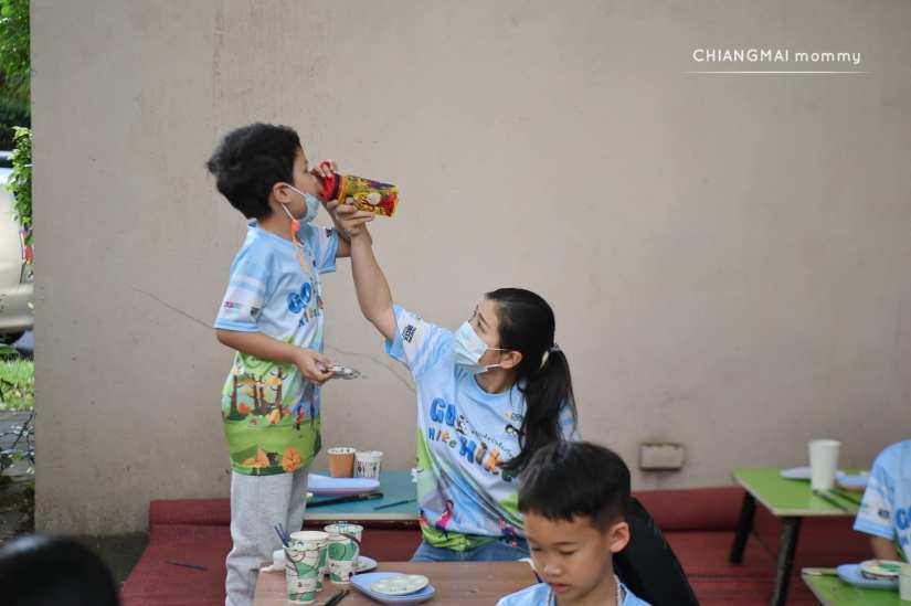 พอถึงเวลาก็รับอาหารเครื่องดื่มพร้อมฟังสรุปบรีฟสั้นๆ จาก ครูเก่ง ครูภู่ และครูย้อย รวมถึงเจ้าหน้าที่อุทยาน ว่าเด็กๆ ต้องเดินแบบไหนให้ปลอดภัย เส้นทางนี้เราจะเดินกัน 3 กิโลเมตรค่ะ