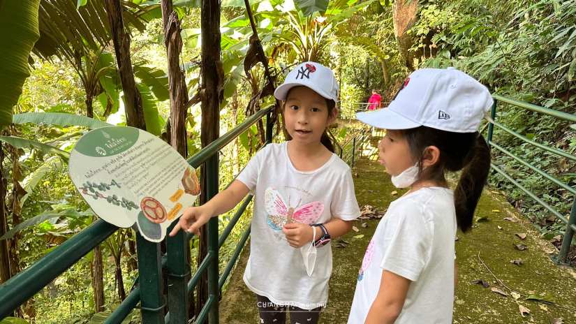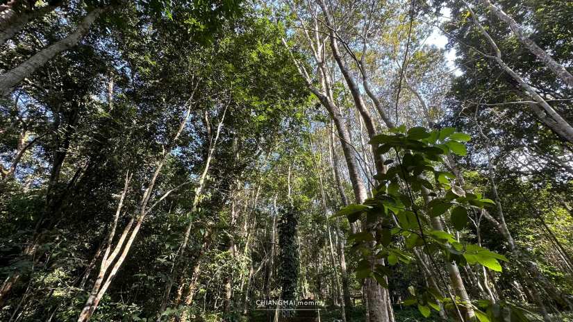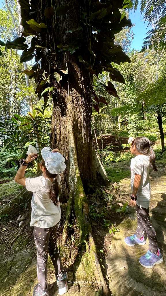 ซึ่งตลอดเส้นทางศึกษาธรรมชาติเส้นนี้ เราเจอต้นไม้เขียวชะอุ่ม ร่มรื่น มีมอส เฟิร์น ไลเคน เสียงนก เสียงแมลง เสียงน้ำตก ธรรมชาติรอบตัวนี่ช่วยดึงให้เด็กๆสดชื่นมีชีวิตชีวามาก