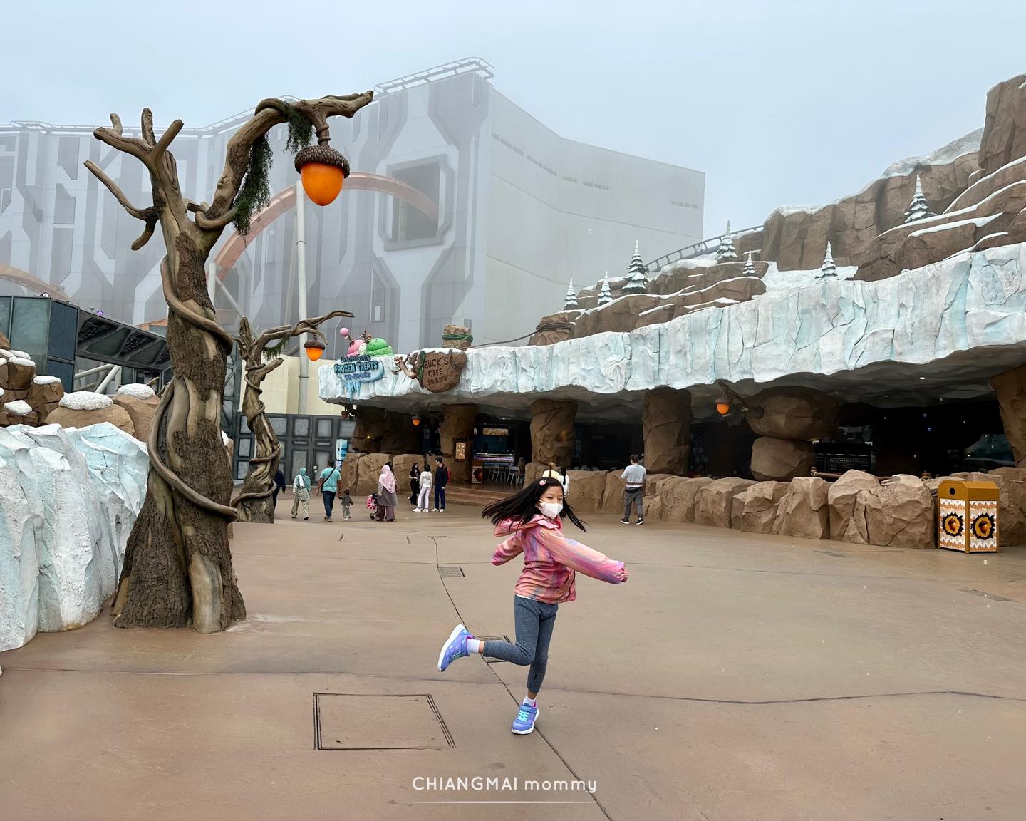 Ice Age : Expedition Thin Ice ตรงนี้จะนั่งรถน้ำแข็งเข้าไปผจญภัยเหมือนดูหนัง รถก็จะโยกๆหมุนไปมาสนุกดีค่ะ ไม่น่ากลัวเลย ส่วน