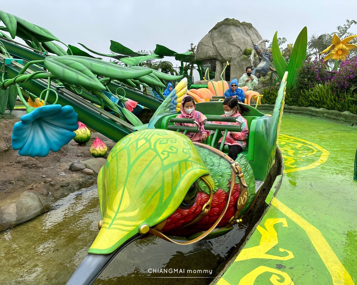 เราเล่น Epic Hummingbird Flyer อันนี้บินๆหมุนเป็นวงกลมเด็กๆชอบ มีน้ำพ่นออกมาโดนนิดหน่อยแบบกำลังโดนวายร้ายเล่นงาน