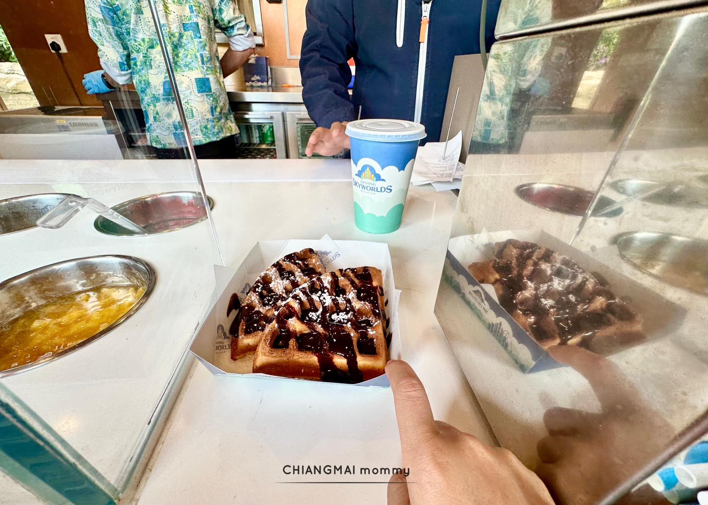 ที่นี่จะมีตู้ล็อกเกอร์บริการ 1 ชั่วโมง ถ้าไม่อยากเสียเงินแค่มาไขออกแล้วเปลี่ยนตู้ค่ะ 555 ถ้าขี้เกียจก็ไม่แพงนะคะแค่ 4 RM เท่านั้น แล้วอาหาร ขนมเครื่องดื่มถูกมากกกกก นี่ซื้อวาฟเฟิลเปล่าๆไม่เอาไอติม 10 RM ได้ 2 ชิ้น!! เพิ่ม Topping ก็แค่ 2 RM อร่อยมาก ของที่ระลึกก็ไม่แพง คือดียยยยยยย์ แม่ชอบแหละประหยัด ![]()