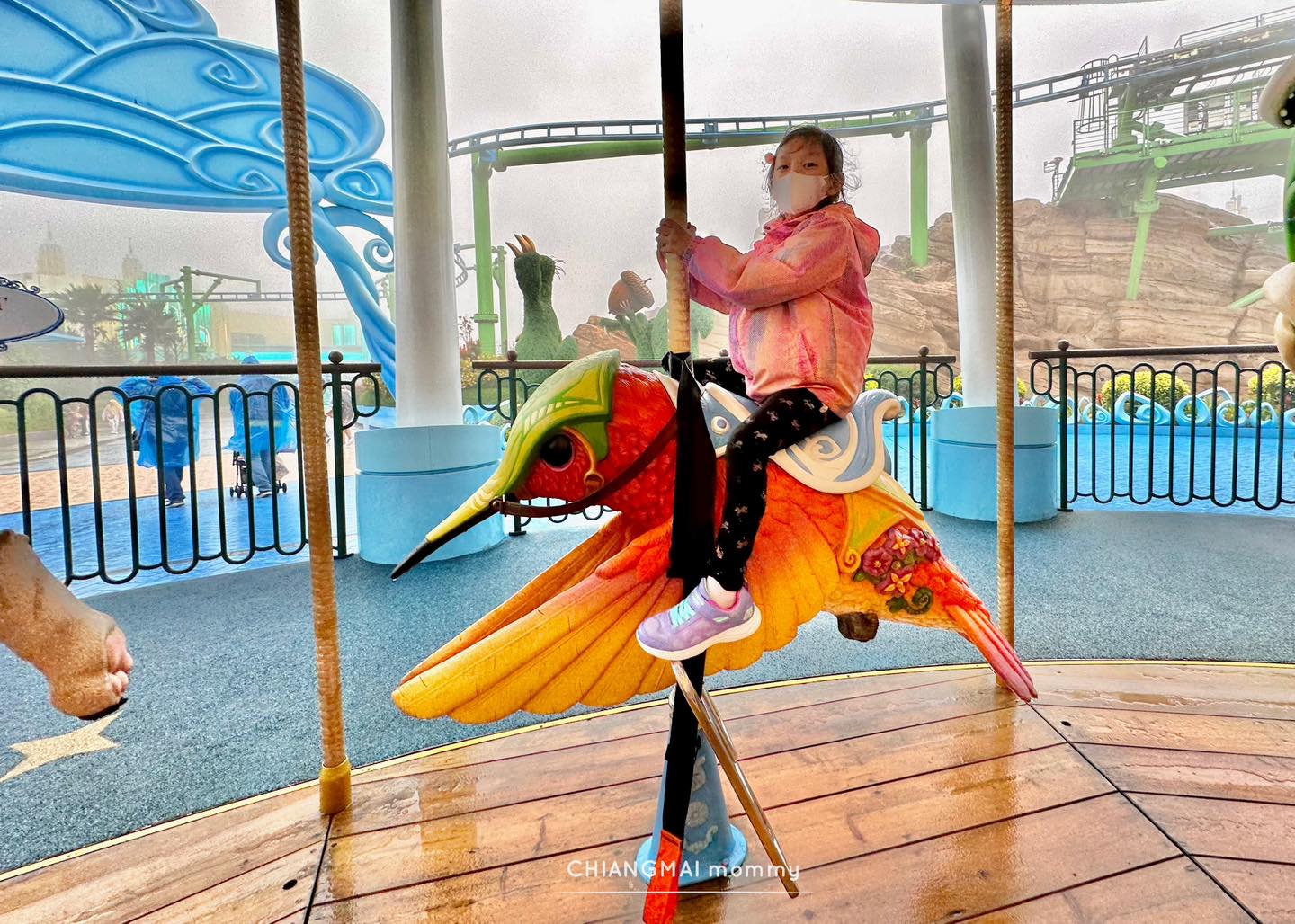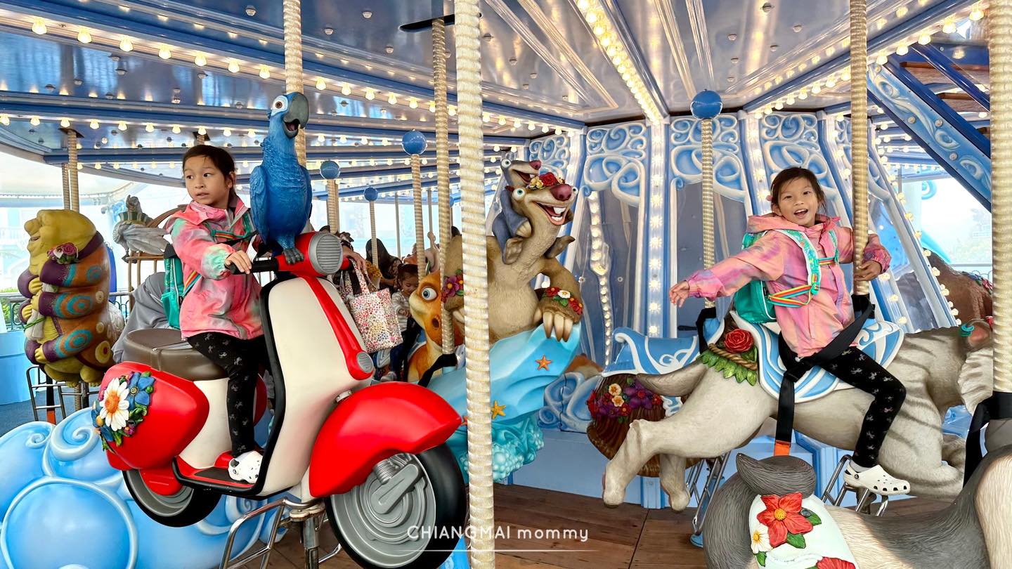เราเล่น Blue Sky Carousey ม้าหมุนน่ารักๆ เล่นไป 2 รอบเอง เพราะรอบหนึ่งจุคนได้เยอะมาก เค้ามี 2 ชั้นเลยนะคะ