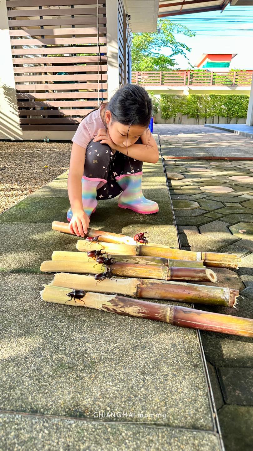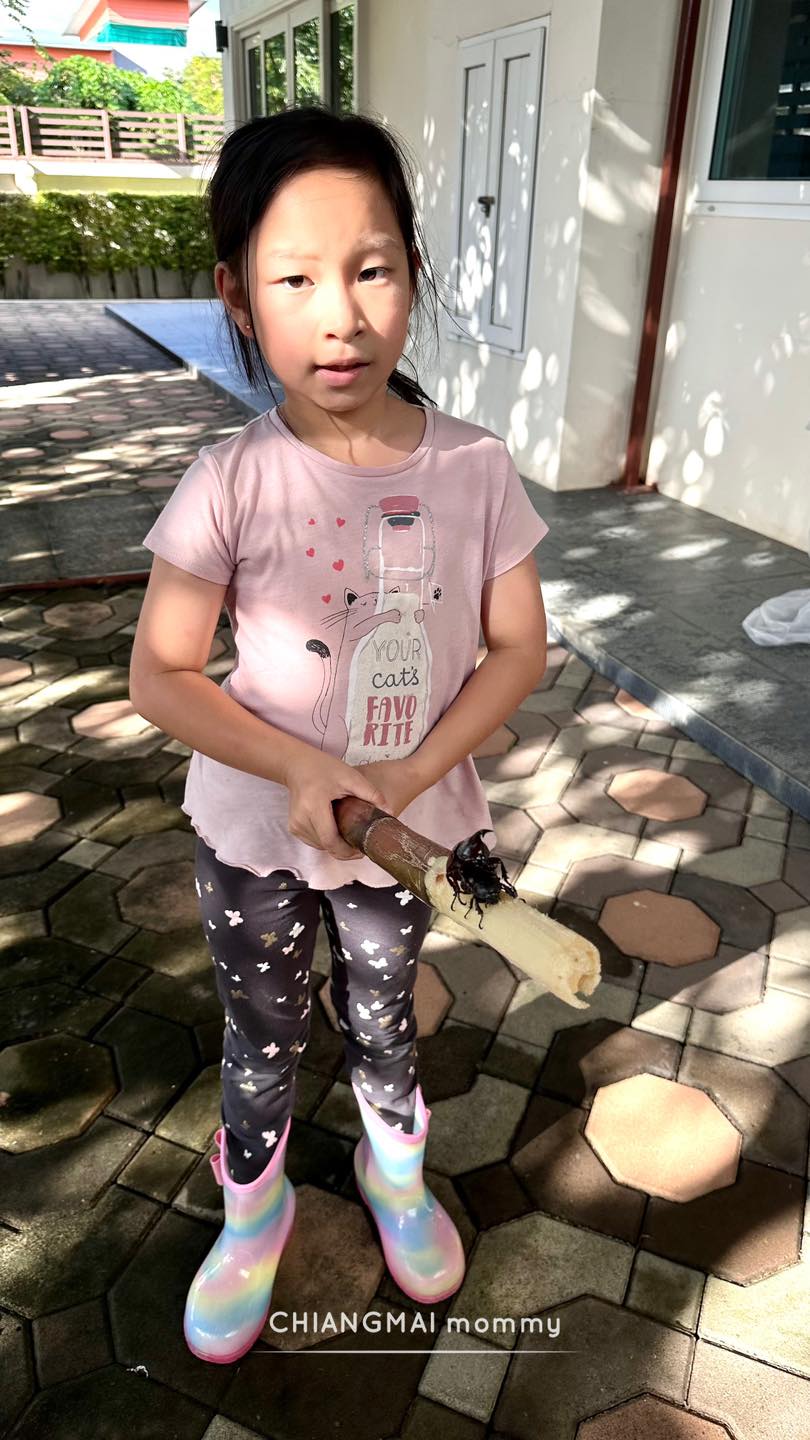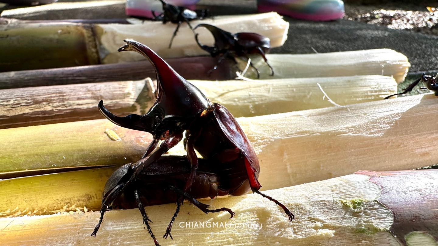 พอจับมาเรียนกันก็พาด้วงกว่างไปกินอ้อยอร่อยๆ ที่ปลูกเองหลังบ้าน เด็กๆก็สักถามหลายเรื่องสุดท้ายเจอด้วงแต่งงานกัน 555 👰♀️🤵 ก็เล่าแบบน่ารักกันไป แล้วก็เอากลับคืนสู่ธรรมชาติเหมือนเดิม ปีหน้าจะได้มีด้วงกว่างให้เด็กๆเจออีกเยอะๆ (ก่อนหน้าเรามาคุณอาจับได้เป็นถังเยอะมากเลยค่ะ) วันนี้เด็กๆจับมาได้ 9 ตัว บินไป 3 ตัว เหลือ 6 ตัวเกาะอ้อยไม่ไปไหนเลยค่ะ สงสัยอ้อยบ้านเราจะหวานมากๆ อิอิ