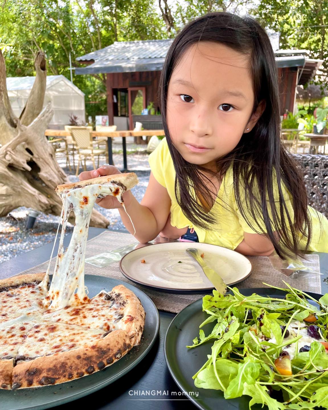 ร้านที่เพิ่งเปิดได้ไม่นานค่ะ บรรยากาศดีมากคือเป็นร้าน Open air ซึ่งก็ไม่ได้ร้อนมากขนาดเราไปกลางวันนะเนี๊ย ออกแนว Farm to table มีโรงเรือนปลูกผัก ฟาร์มไข่ไก่ เพื่อนำมาปรุงอาหาร อาหารอิตาเลี่ยน พวกพิซซ่า สปาเกตตี้ ฟิชแอนด์ชิพ สเต็ก และส่วนขนมนี่ก็น่ากินทั้งนั้น ร้านนี้มีแต่ของโปรดเด็กๆค่ะ