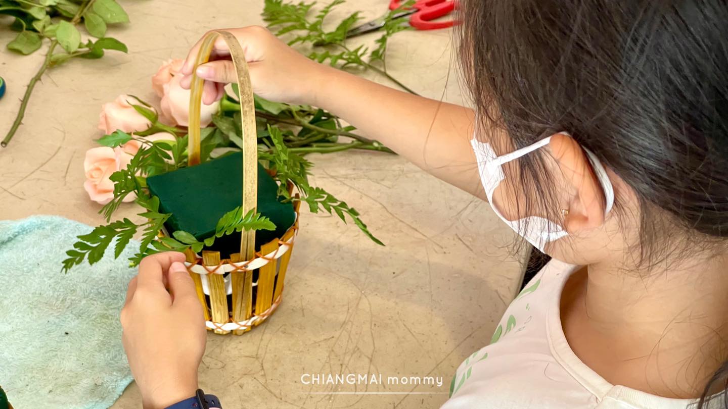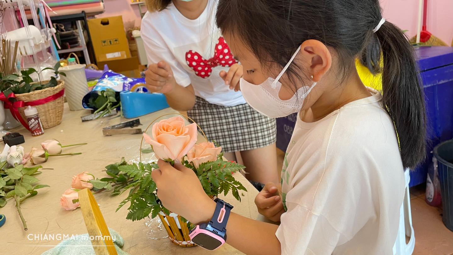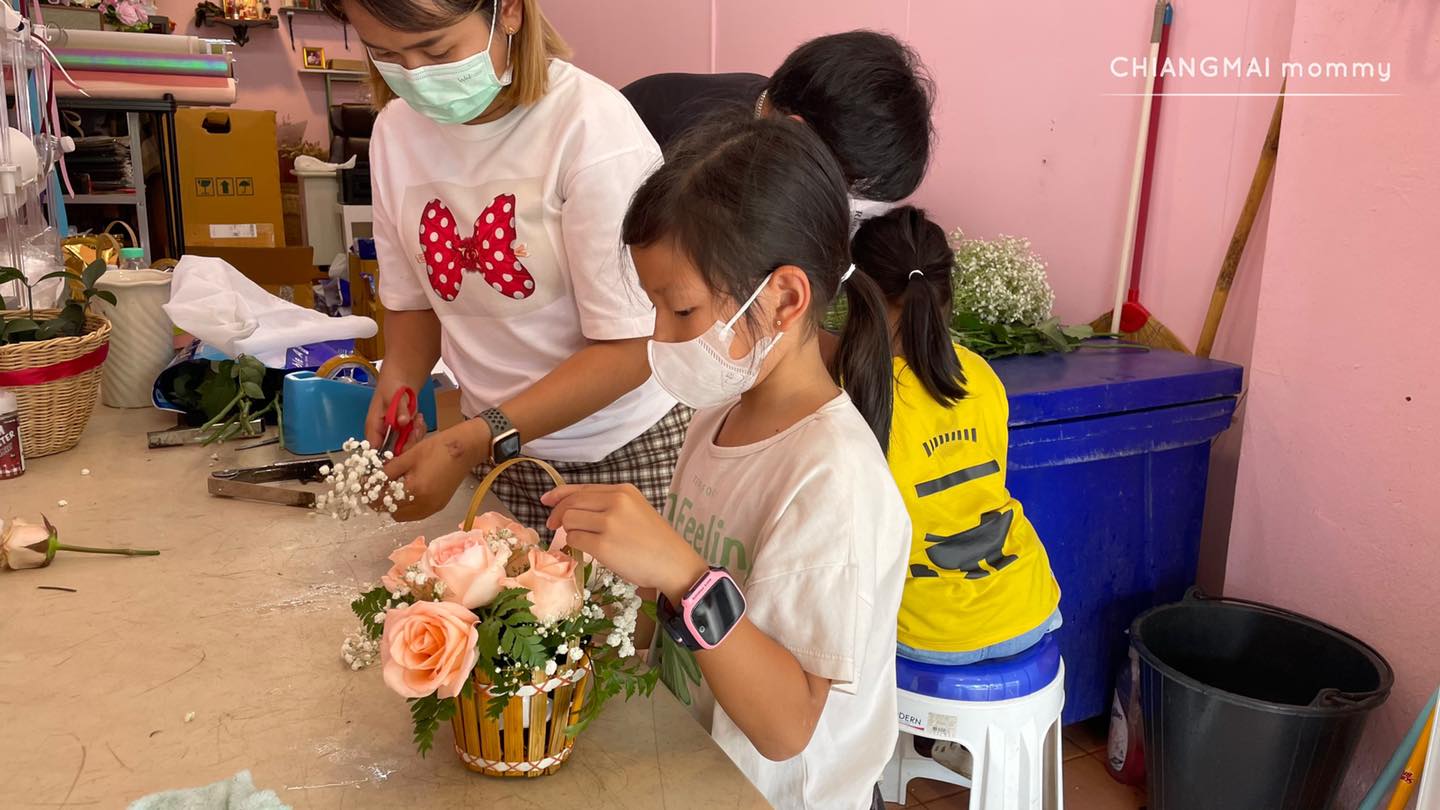 ได้แวะทำ 𝐰𝐨𝐫𝐤 𝐬𝐡𝐨𝐩 จัดดอกไม้สวยๆที่ร้าน 𝑷𝒂𝒓𝒊𝒏𝒅𝒂 𝒇𝒍𝒐𝒘𝒆𝒓 𝒔𝒉𝒐𝒑 คือแม่เห็นตระกร้าดอกกุหลาบน่ารักตะมุตะมิเลยว่าจะซื้อกลับบ้าน แต่มีแค่อันเดียวเลยต้องจัดใหม่ ก็ลองถามว่าขอให้เด็กๆทำได้ไหม