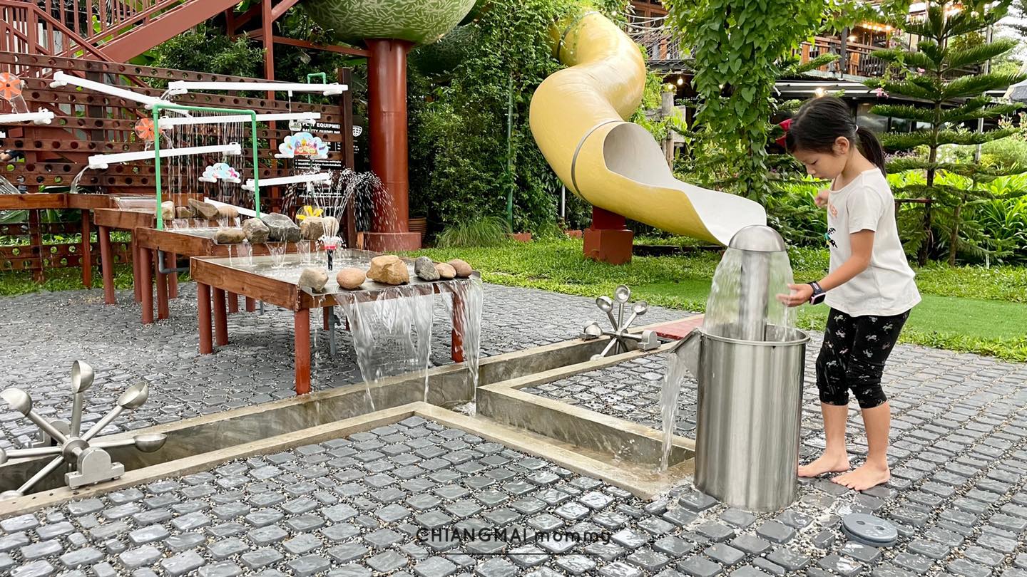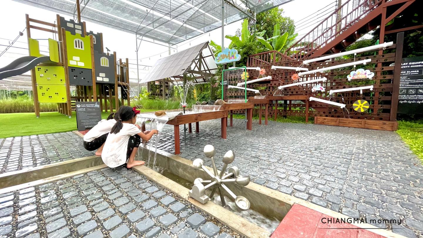 เครื่องเล่นกังหันน้ำ (Water play station) จะเป็นโซนน้ำเด็กๆก็ได้เรียนรู้หลักวิทยาศาสตร์ วัฏจักรน้ำ