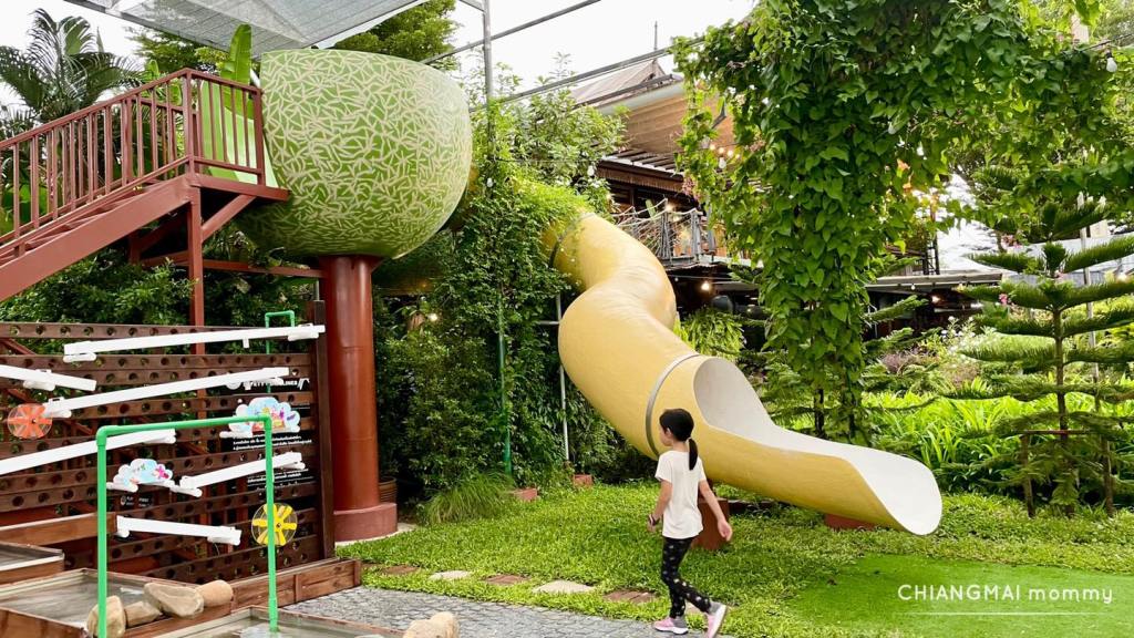 สะพานลื่นลอดอุโมงค์ลูกเมล่อน ทางสไลด์เดอร์ที่ยาว เรียกเสียงหัวเราะเด็กๆได้ดีเชียวค่ะ นอกจากนั้นยังมี