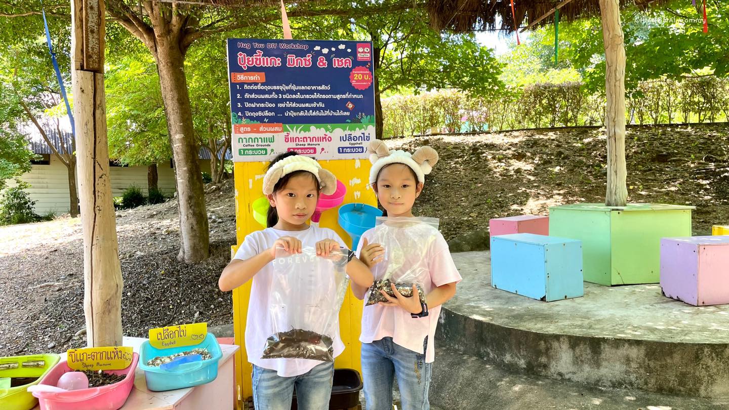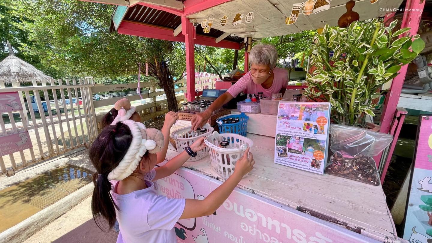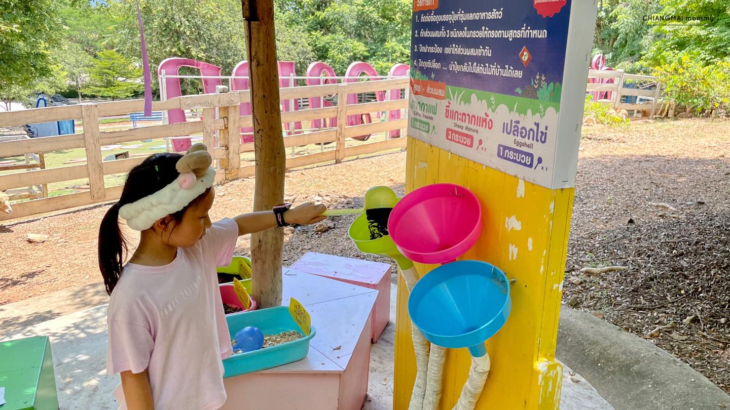 พอกินเสร็จก็เข้าฐานเรียนรู้วิธีทำปุ๋ยจากอึแกะอีกด้วย ตรงนี้สามารถนำกลับบ้านไปใส่ต้นไม้ที่บ้านได้ด้วยค่ะ ภายในฟาร์มเด็กๆสามารถเลือกป้อนอาหารสัตว์ต่างๆที่สนใจได้และสำหรับแฝด…แน่นอนเลือกป้อนหมดทุกตัว 555+ แถมมีซ้ำอีกด้วย น้องหมานี่ป้อนไป 3 รอบค่ะ