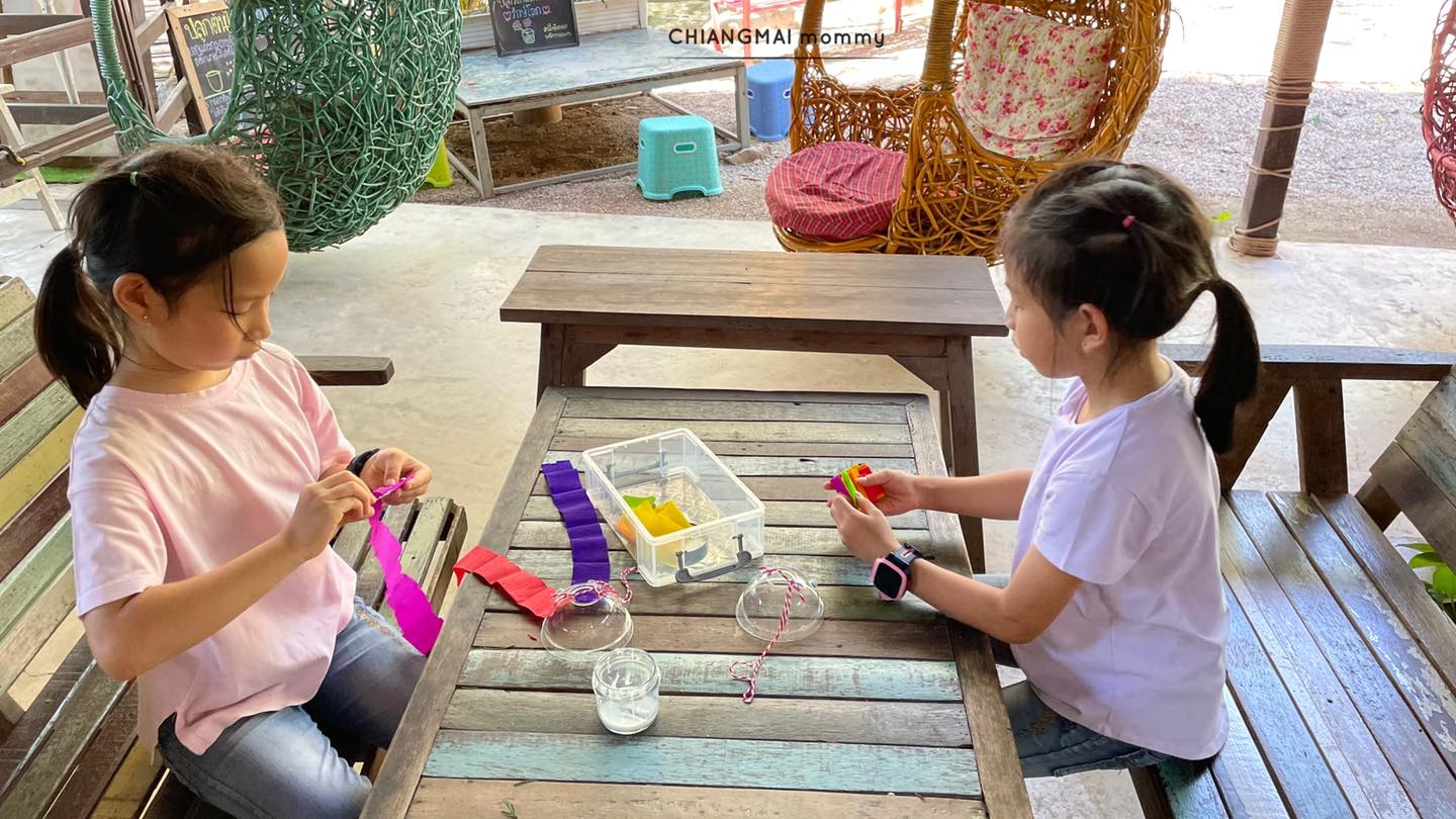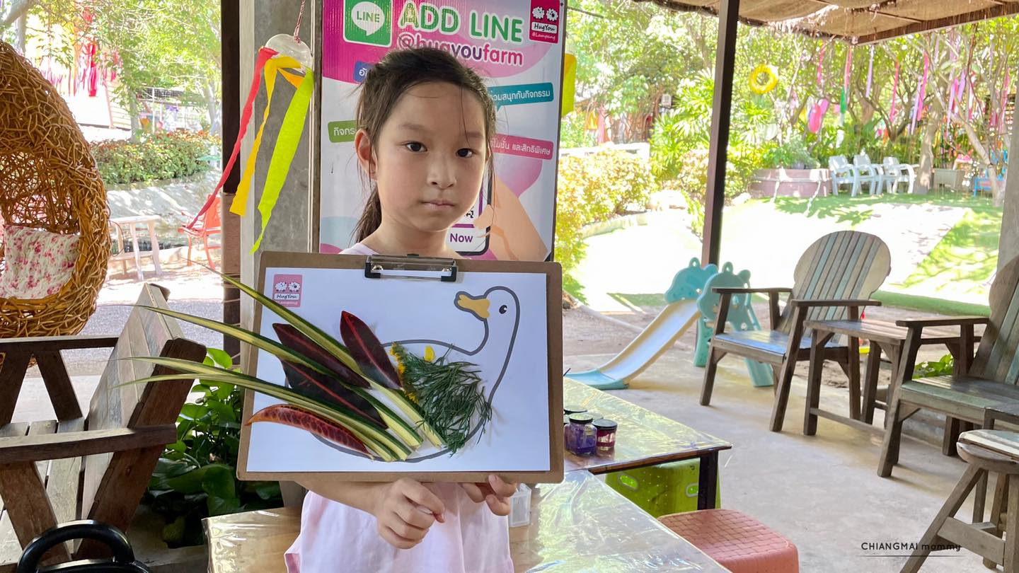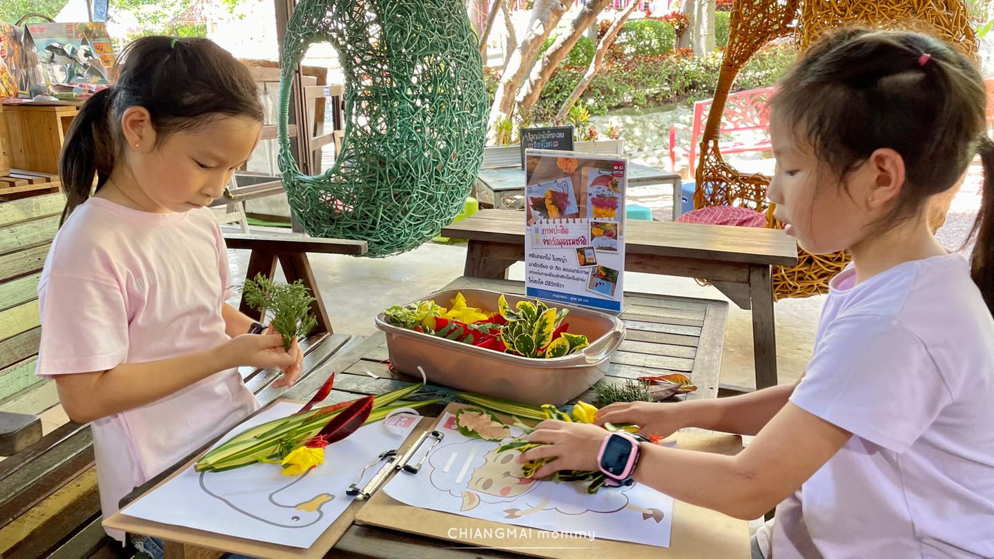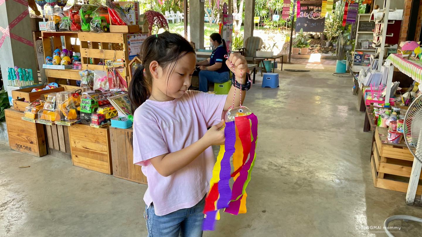 แล้วก็วนกลับมาทำกิจกรรมประจำเดือนอีกรอบซึ่งเน้นนำสิ่งของรอบตัวมาเล่นมาทำงานประดิษฐ์ รอบที่เราไปคือทำแมงกระพรุนจากฝาแก้วพลาสติก และเป็น Nature art คือเก็บใบไม้และดอกไม้รอบฟาร์มมาตกแต่งงานศิลปะ เด็กๆชอบและสนุกมากๆ