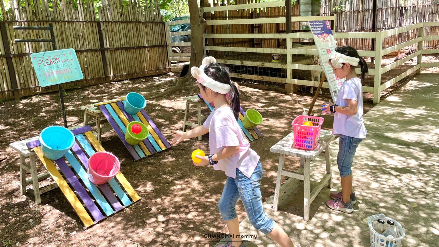 นอกนั้นก็มีพื้นที่พัฒนากล้ามเนื้อมัดใหญ่สไลด์เดอร์ เชือกปีน บ่อทราย และยังมีมุมทำกิจกรรม เกมต่างๆตามพื้นที่ของฟาร์มซึ่งจะเป็นแนวหยิบจับสิ่งของใกล้ตัวและเหลือใช้มาเล่นสนุก ถูกใจเด็กสายเขียวรักษ์โลกได้อย่างดีเลยค่ะ เรายังสามารถนำไอเดียต่างๆไปปรับเล่นที่บ้านได้ด้วยนะคะ