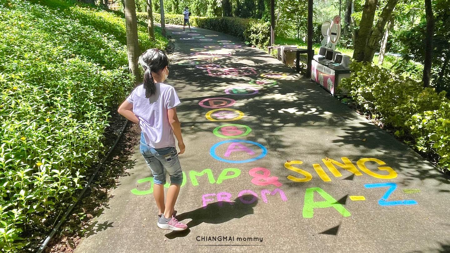 ตอนนี้เค้าเพิ่มในส่วนของกิจกรรมเด็กให้เยอะขึ้น เยอะชนิดที่เรียกว่าใช้เวลาทั้งวันก็เก็บไม่ครบค่ะ ขนสารพัดกิจกรรมมาให้เด็กๆเล่นและเรียนรู้ เริ่มเล่นตั้งแต่ก้าวขาออกจากรถเลยทีเดียว เข้าไปก็จะเจอกิจกรรม Jump and sing A to Z เป็นกิจกรรมให้กระโดดตามตัวอักษร A-Z เห็นปุ๊บลูกก็กระโดดๆร้องเพลงอัตโนมัติเลยค่ะ เออ.. เป็นทางชันขึ้นเขาด้วยนะคะกล้ามเนื้อขามาเลยค่ะ