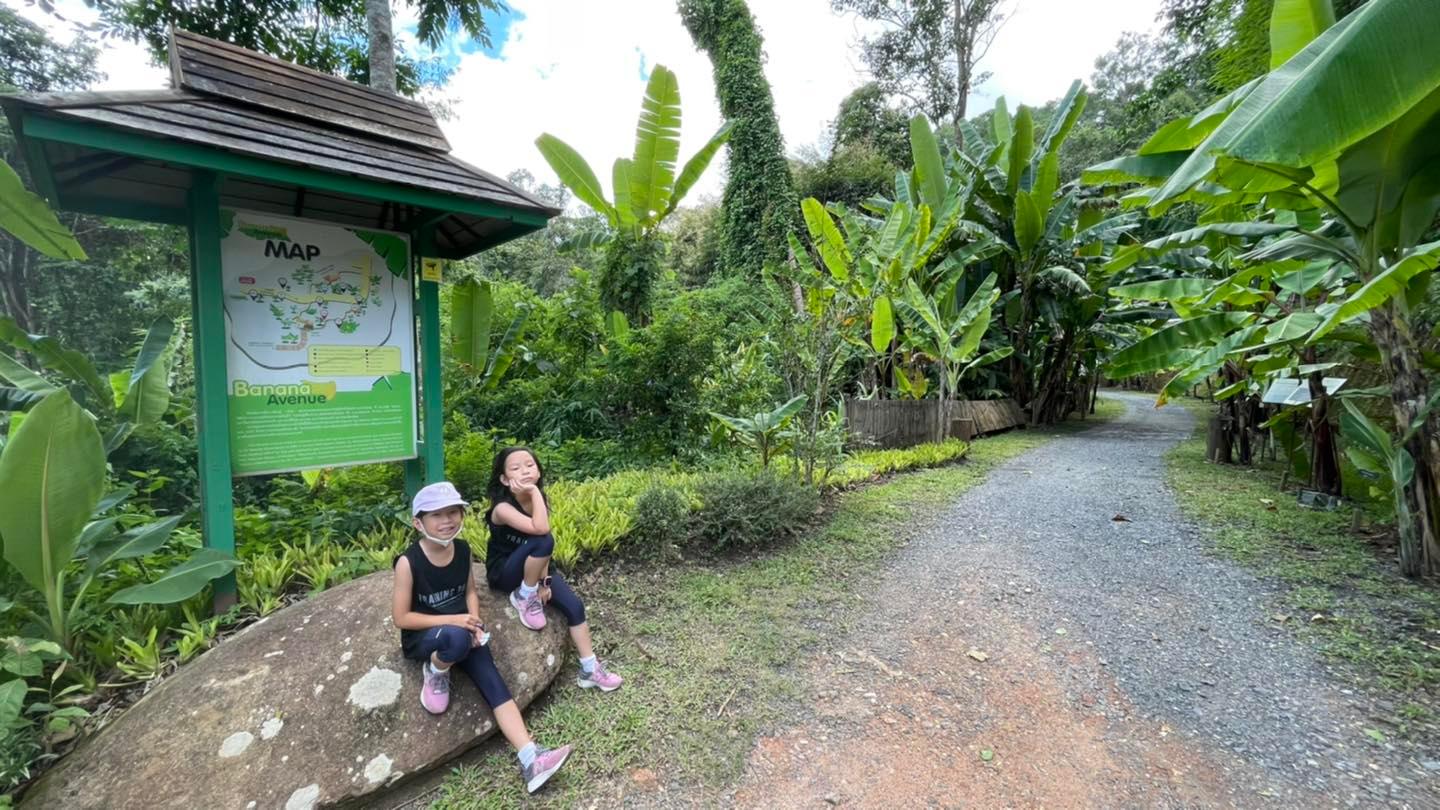 วันนี้พาเด็กๆมาแม่ริมที่สวนพฤกษศาสตร์สมเด็จพระนางเจ้าสิริกิติ์ ซึ่งจริงๆที่นี่มีส่วนเรียนรู้มากมาย ทั้งพิพิธภัณฑ์ธรรมชาติวิทยา, เส้นทาง Canopy walk เรือนกระจกพันธุ์ไม้เขตป่าฝน และยังมีเส้นทางศึกษาธรรมชาติอีกหลายเส้น และวันนี้เลยได้โอกาสมาเดินเที่ยวที่ Banana Avenue ซึ่งเป็นเส้นทางเดินที่ไม่ยาก เดินสบายๆประมาณกิโลนิดๆเองค่ะ ที่นี่จะรวบรวมพันธุ์กล้วยหลากหลายสายพันธุ์ไว้ ค่อนข้างร่มแต่คงด้วยเรามาเดินหน้าฝนมันจึงชื้นๆและมียุงนิดหน่อย แถมวันนี้ได้เจอแมลง หนอนให้เด็กๆได้ตื่นเต้นนิดๆ สนุกกันมากค่ะ