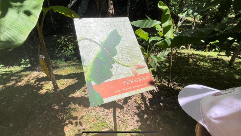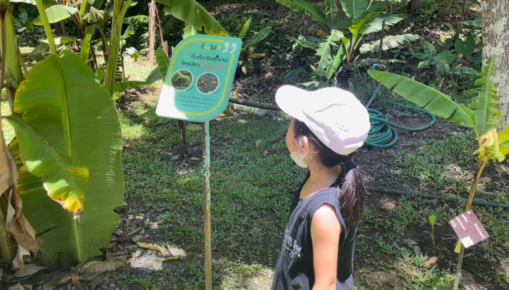 เราเข้ามาด้านในจ่ายค่าบำรุงนิดหน่อย 4 คนพ่อแม่ลูกกับรถอีก 1 คัน 140 บาทเองค่ะ แล้วตรงเข้ามาไม่ไกลก็ถึงทางเข้าเส้นทางป่ากล้วยเลยค่ะ จอดแล้วเดินตามแผนที่ด้านหน้าได้เลย ภายในมีป้ายเรียนรู้ให้อ่านมากมาย แบกความรู้ใหม่ๆสนุกๆเกี่ยวกับกล้วยกลับบ้านเพียบเลยค่ะ