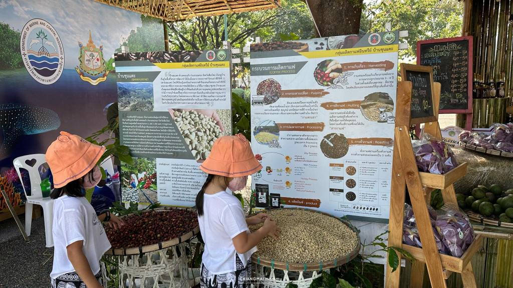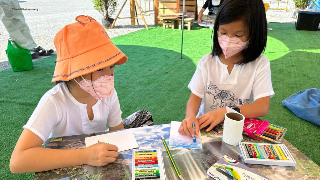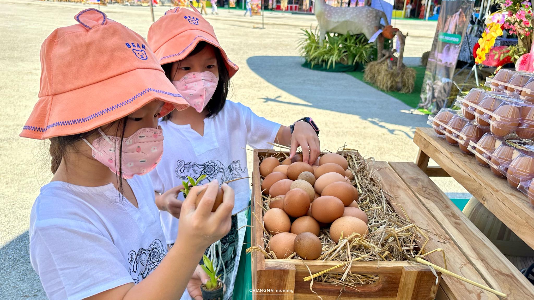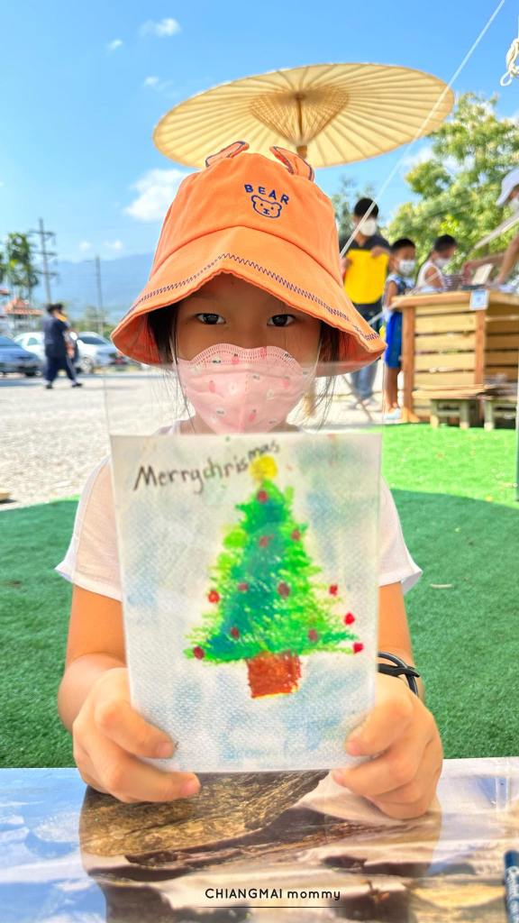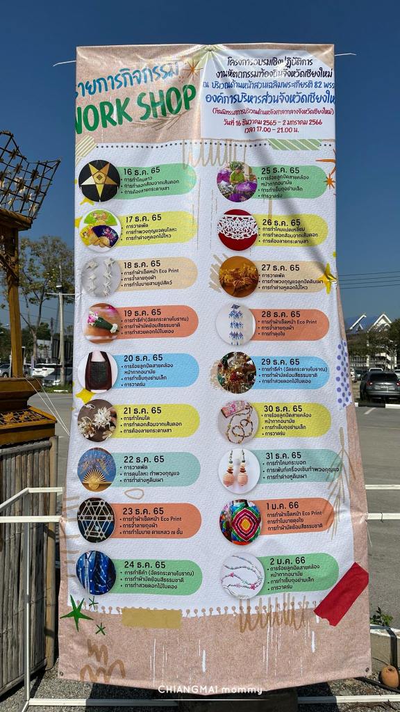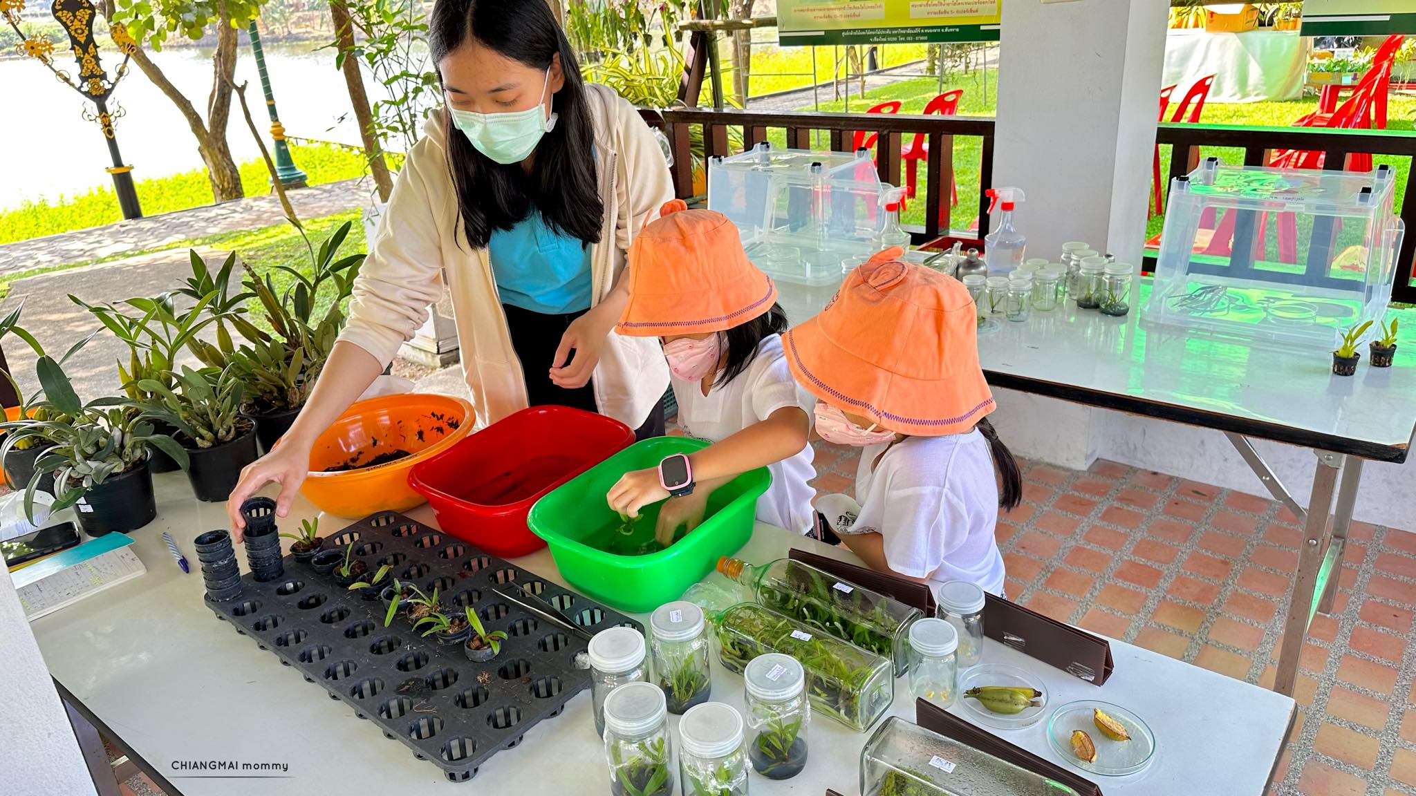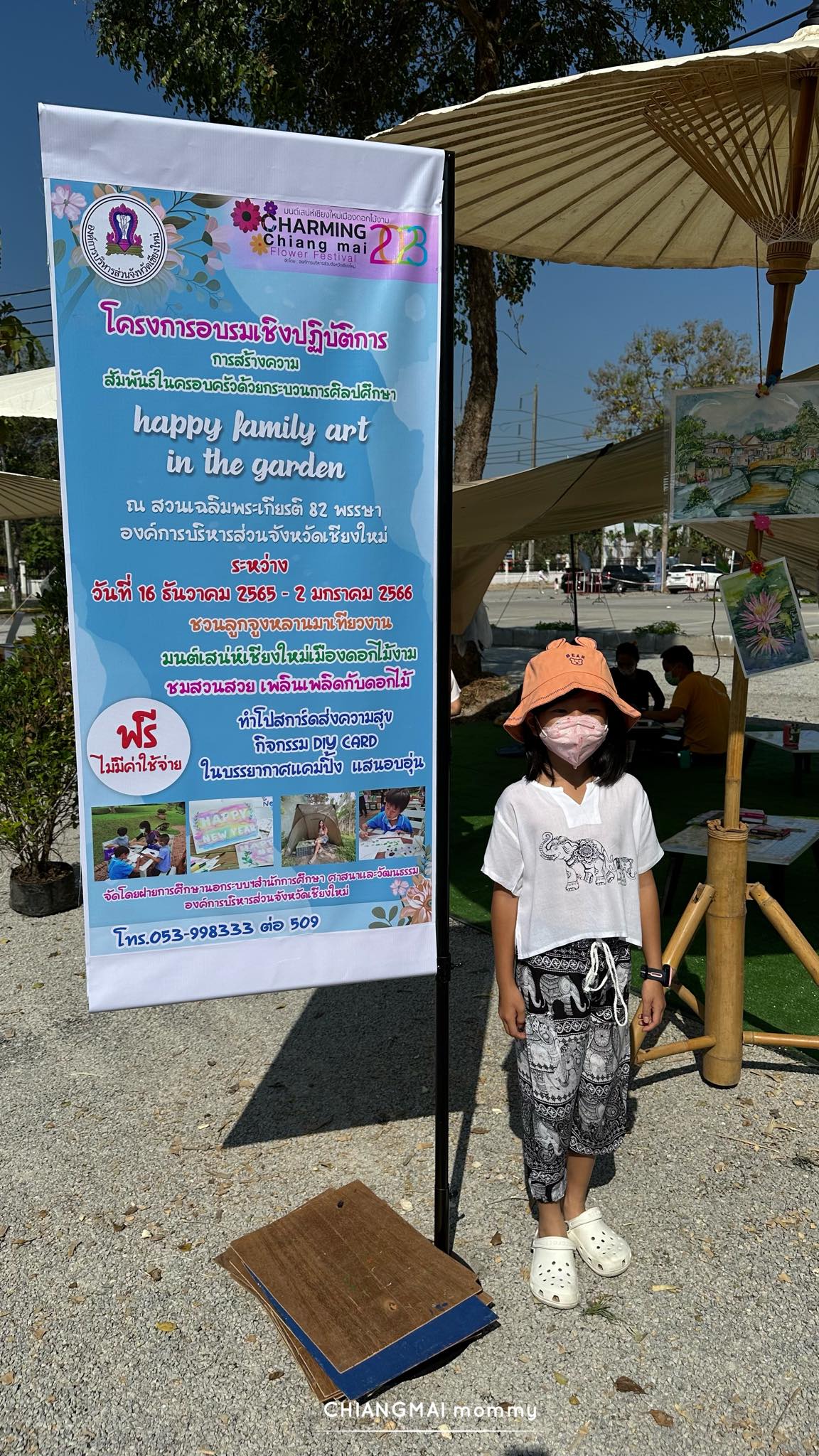 ที่เริ่ดคือ กิจกรรมให้เด็กๆทำเพียบ!! แต่ละวันก็ไม่ซ้ำกัน อยู่ที่ลานด้านนอกของฝ่ายการศึกษานอกระบบ บรรยากาศแนวแคมป์ปิ้ง ส่วนเราวันนี้มาวาดรูปสวยๆ ที่บูทอื่นอย่างของกรมป่าไม้ก็มีเพนท์ใบไม้ลงผ้าโดยการทุบๆๆๆ ก็ได้ผ้าลายธรรมชาติสวยๆเลยค่ะ หรือจะย้ายต้นอ่อนกล้วยไม้ลงกระถางจาก ม.แม่โจ้ โซนกล้วยไม้ ยังๆๆๆคุณพ่อคุณแม่สามารถไปถ่ายรูปสไตล์เจ้าดารารัศมี หรือกาสะลอง-ซ้องปีบ มีชุดให้บริการ สวยๆหรูหราแบบเจ้านางโบราณ (แอบเสียดายไม่มีไซส์เด็ก) แล้วก็ไปดูกรรมวิธีผลิตผ้าทอมือ กี่ทอผ้า กี่กระตุก การเลี้ยงหม่อน ไหม ดูกันเพลินมากๆค่ะ สามารถลองทำได้ด้วยค่ะ คุณยายใจดีให้ความรู้เราเยอะมากๆแถมได้เส้นไหมมาด้วย