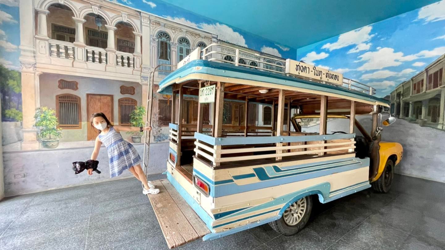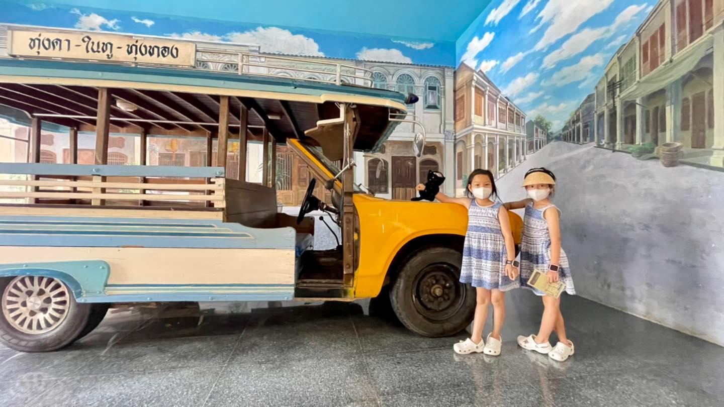 💸 เราซื้อตั๋วเข้าชมผู้ใหญ่ ๕๐ บาท เด็ก ๒๐ บาท คนแก่เข้าฟรี ราคาน่ารักอ่ะค่ะ เริ่มแรกพาเด็กๆขึ้นรถสองแถวโบราณเพื่อย้อนอดีตของเมืองภูเก็ตกันค่ะ อิอิ