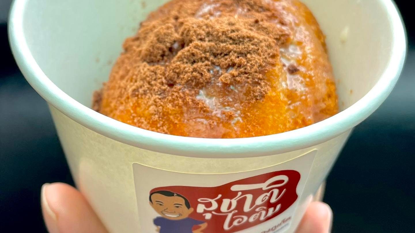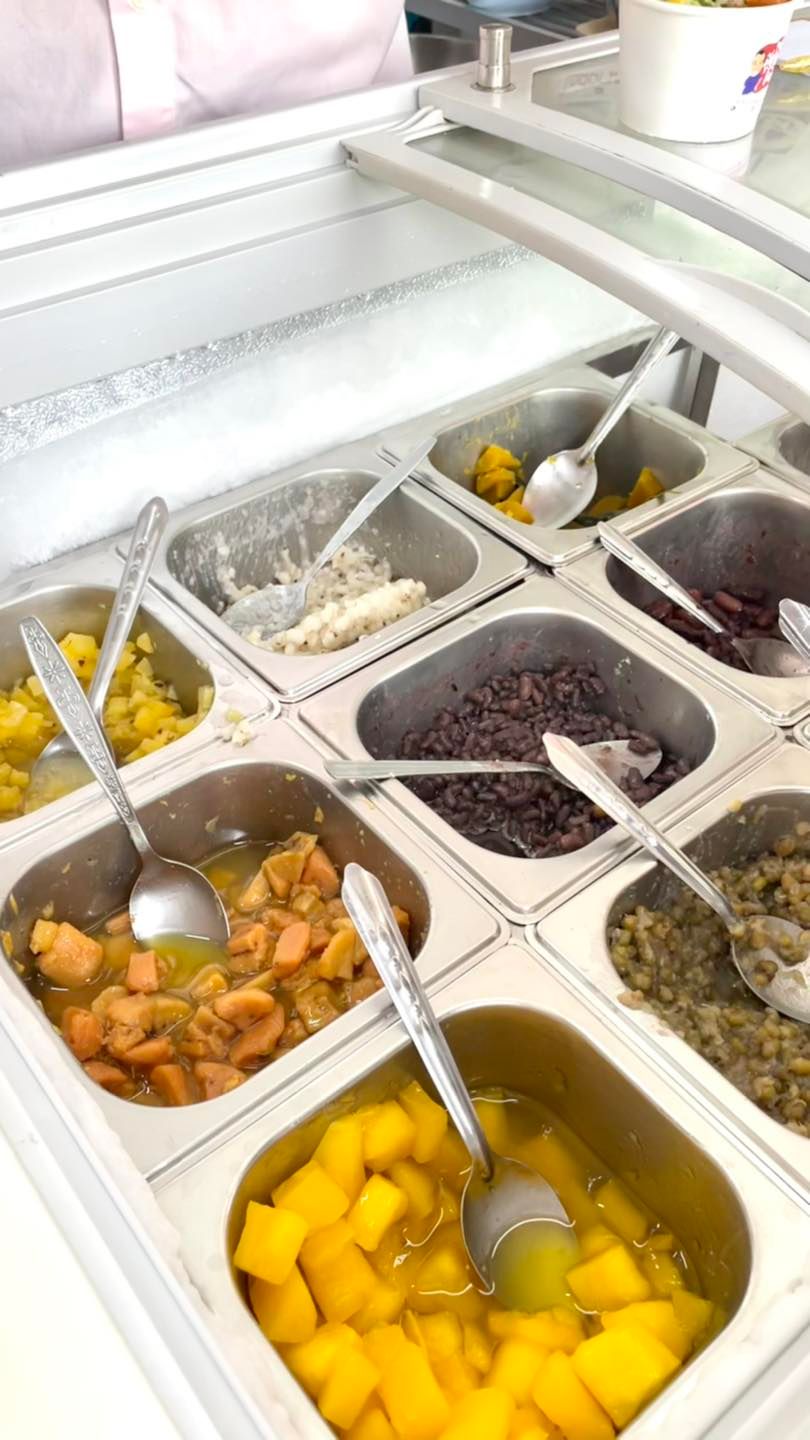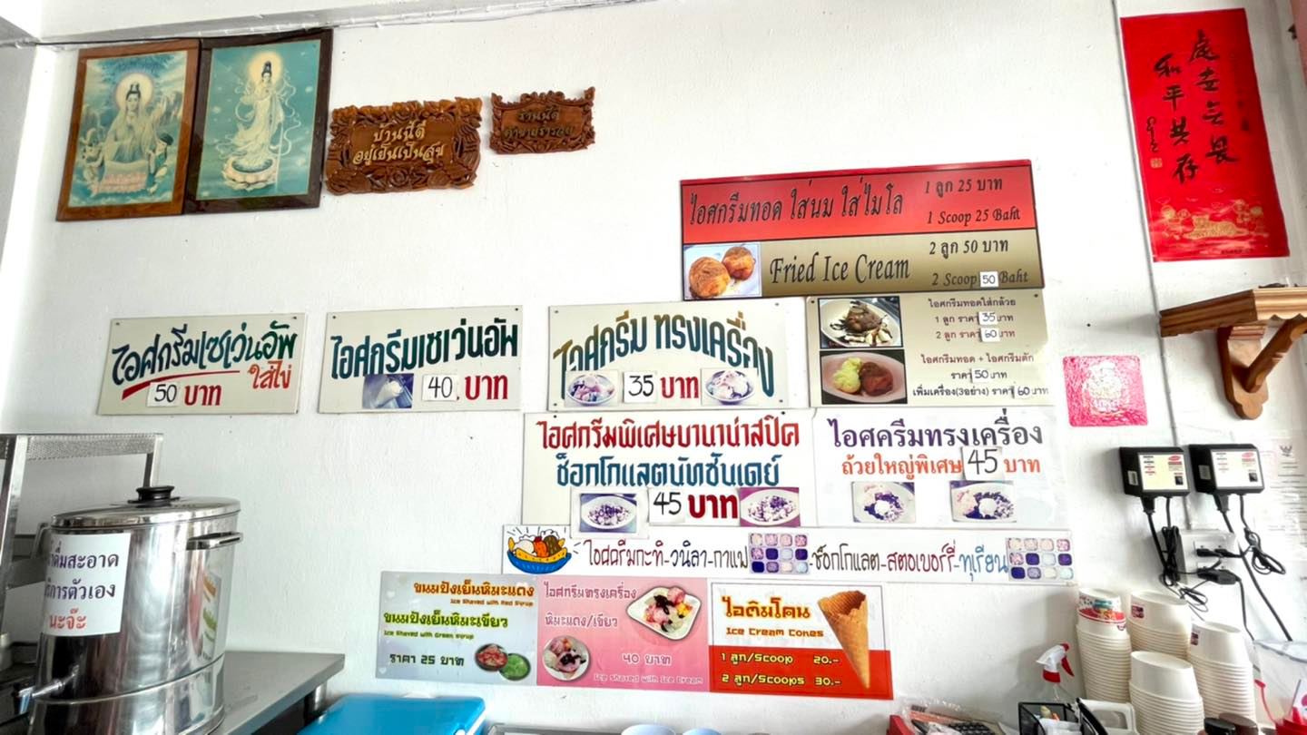 เป็นเจ้าแรกที่ขายไอติมทอดค่ะ ยังมีไอติมอื่นๆเช่นไอติมทรงเครื่อง ไอติมไข่แข็ง ไอติมเซเว่นอัพอันนี้เป็นเครื่องดื่มค่ะ ไอติมทอดนี่มีหลายรส ก้อนละ 25 บาท ตอนดูในรูปก็คิดว่าก้อนเล็ก พอได้มานี่ใหญ่พอควรเลยค่ะ คาดผิดไปหน่อยอ้วนอีกละ 555+ มีทานคู่กับกล้วยแต่ลูกเคยชินกับไอติมบุฟเฟต์วาวาไปชี้ๆเลือกท๊อปปิ้งเฉย คุณยายที่ขายบอกเพิ่มได้ค่าาาา มีแถมปีโป้เพิ่มให้อีก ถูกใจเลย ![]()