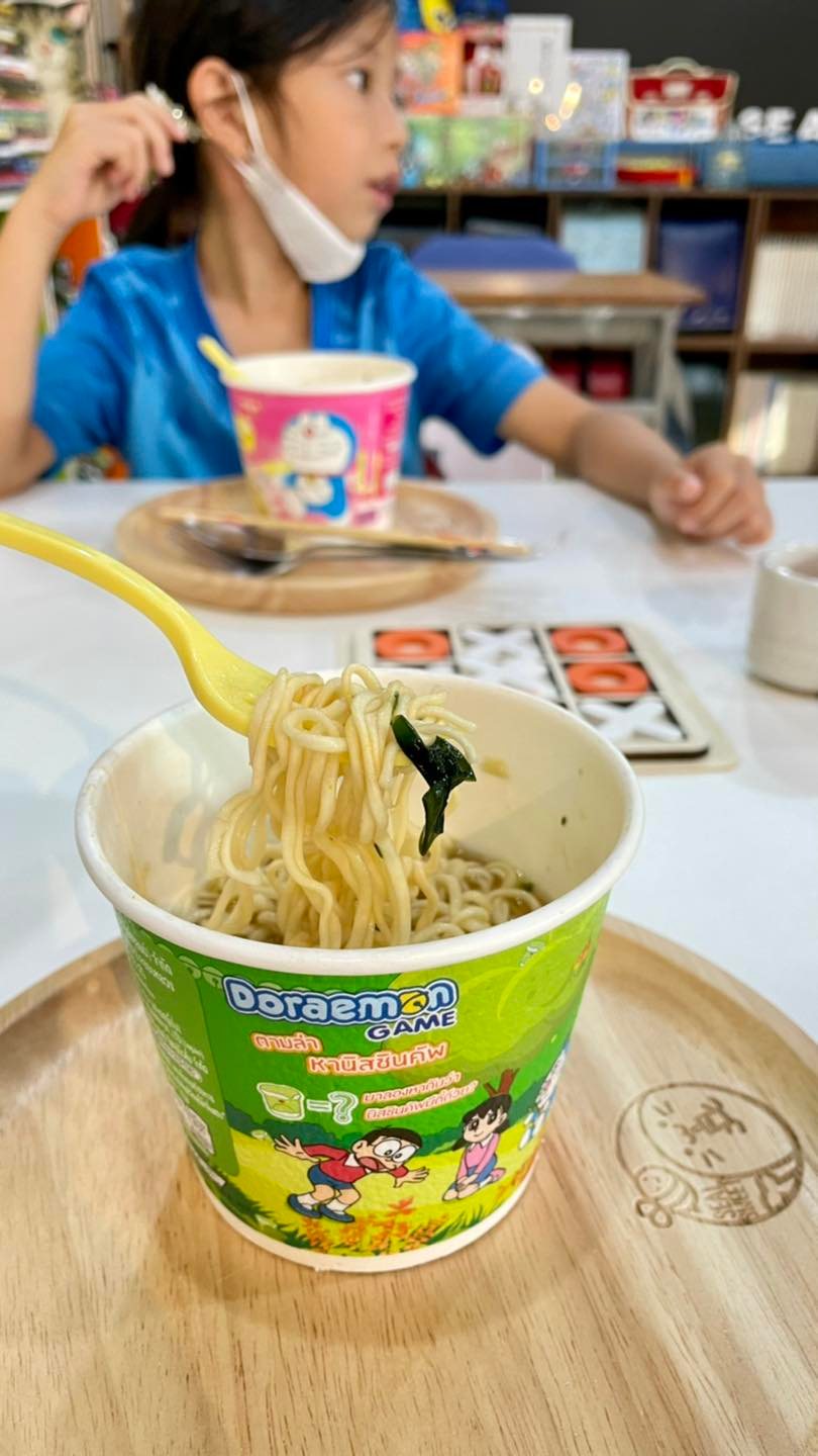 ขนมก็แบบน่ารักมากกก คุ๊กกี้อุ๋งหอมมาก พานาคอตต้าอุ๋งแบบน่ารักอ่ะ ส่วนอาหารไม่มีค่ะ แต่มีนิชชินโดเรม่อน โอ้ยยยย น่ารักอีกแล้ว 5555 แม่เป็นคนแพ้ความน่ารัก อิอิ