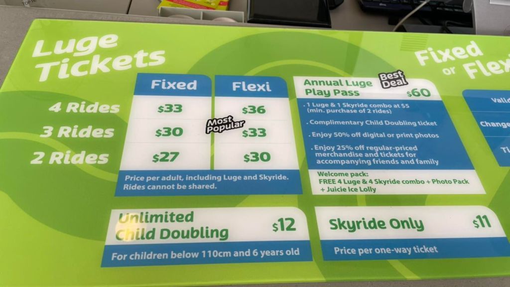 แถมเส้นทางที่เคยเดินก็ถูกกั้นไว้เพราะมีก่อสร้างปรับปรุงพื้นที่ ที่เราเล็งไว้คือ #skyrideLuge เป็นการขับรถไหลลงเขา อันนี้เคยเล่นกันอยู่ชอบมากกกก ถ้าต่ำกว่า 6 ขวบต้องมีผู้ใหญ่นั่งด้วยนะคะ แม้เราจะ 7 ขวบแต่ตัวเล็กปะป๊าเลยให้นั่งแบบแชร์แทนค่ะ ไม่กล้าให้ขับเอง