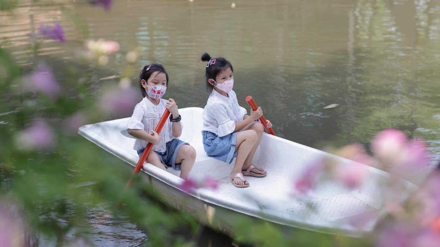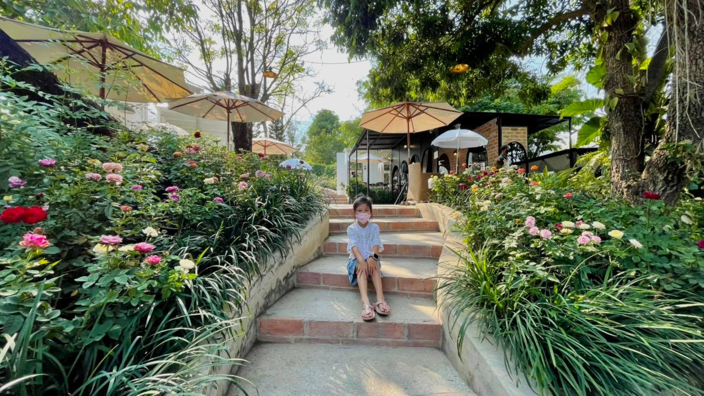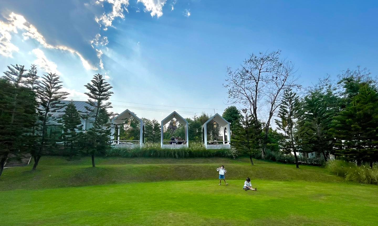 ส่วนวิวและบรรยากาศสวยมากๆ มีมุมถ่ายรูปเพียบ น้ำตก สวนดอกไม้ สระน้ำ สนามหญ้ากว้างๆ ลูกสนุกมากจริงๆ แค่วิ่งเล่นไล่จับก็เกินพอแล้วค่ะ ไม่ต้องมีสนามเด็กเล่นก็สนุกเพราะพื้นที่ outdoor กว้างๆ อากาศก็ดีมากวันนี้ลมพัดเย็นสบาย ส่วนพื้นที่ทานอาหารก็รักษาระยะห่าง ไม่แออัด มีทั้งห้องแอร์และพื้นที่สวน