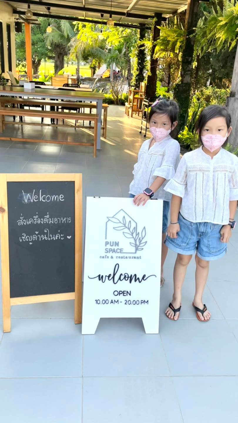 ก่อนกลับเชียงใหม่แวะมาทานอาหารที่ร้าน Pun space ร้านน่ารักดีค่ะ มีสนามเด็กเล่น พื้นที่เล่นทราย มีทั้งพื้นที่ Outdoor และห้องแอร์ บรรยากาศชิวๆสบายๆ มีสระน้ำตรงกลาง มีปลา ติดทุ่งนา ลมเย็นอากาศถ่ายเทดีมาก มีต้นไม้ร่มรื่น พื้นที่เล่นของเด็กเลยก็ไม่ร้อนค่ะ เหมาะที่จะมาทานอาหารและเอาลูกๆมาเล่นด้วยได้
