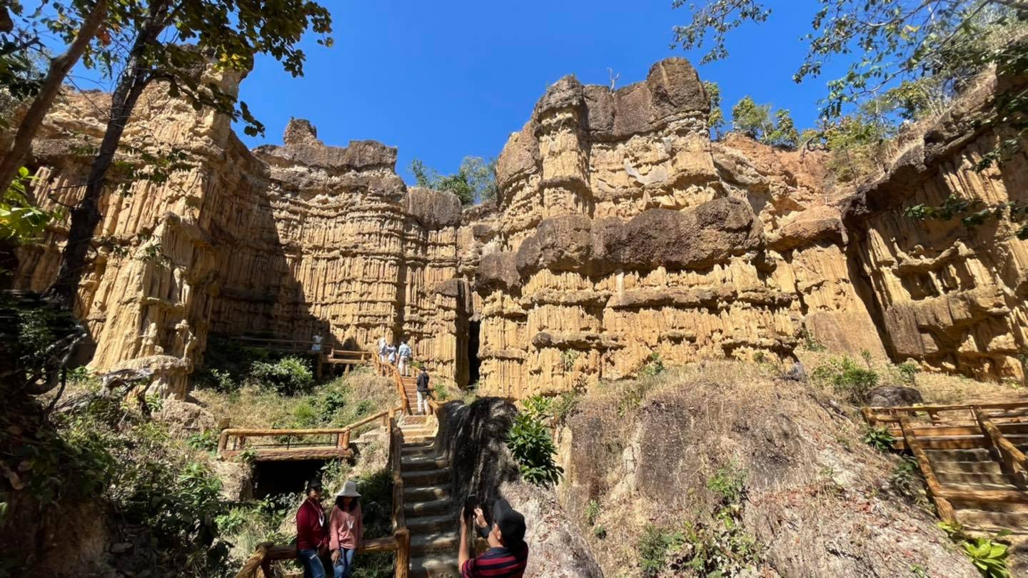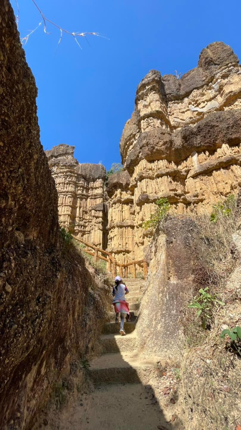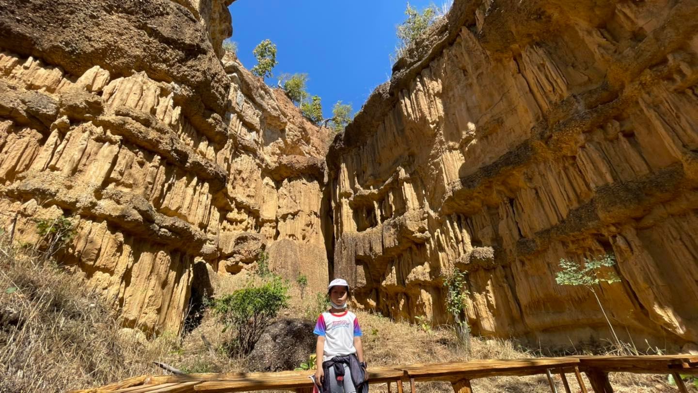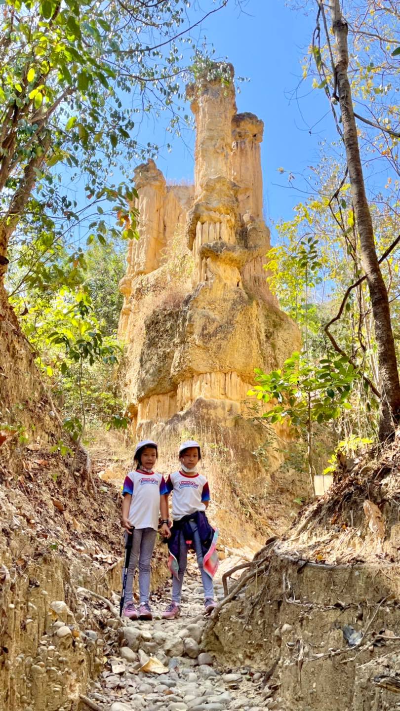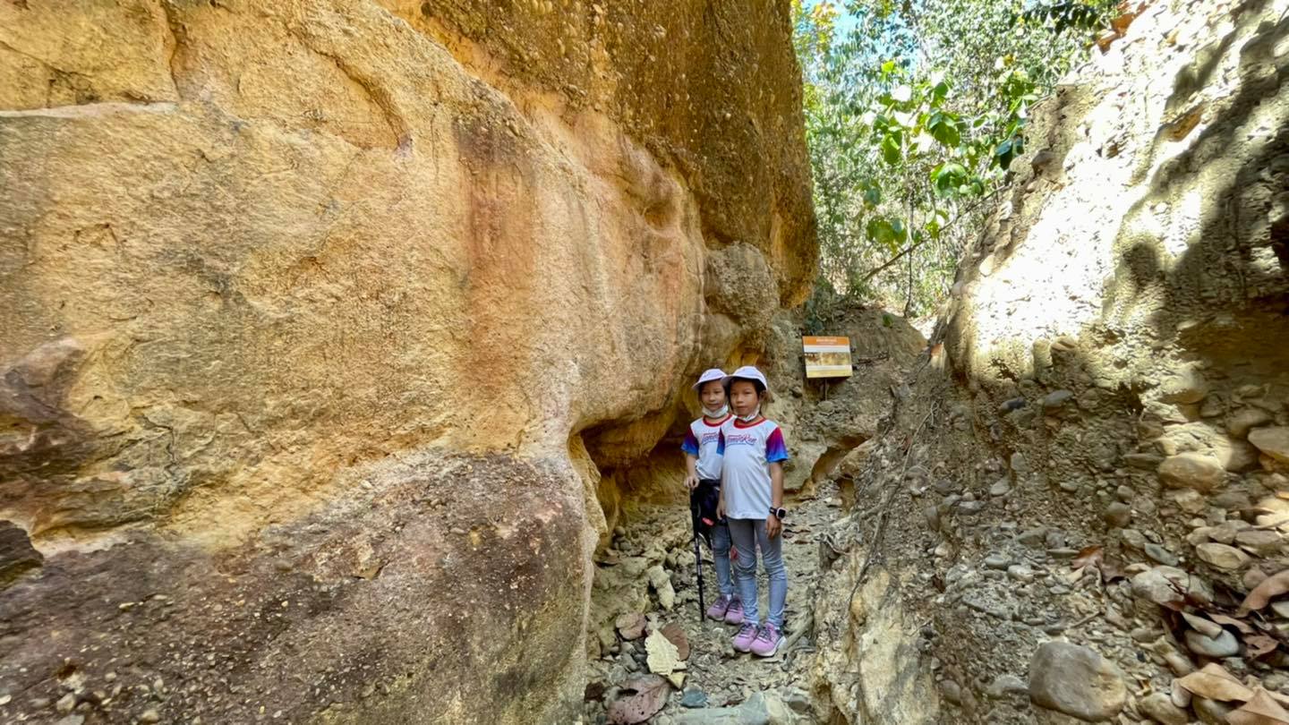 ดังนั้นบางช่วงอาจร้อนสักหน่อย แต่เส้นทางเดินสำรวจธรรมชาติที่นี่แปลกมากไม่เหมือนที่อื่นดังนั้นสนุกแน่นอน มีป้ายเรียนรู้ชัดเจน เราค่อยๆเดินอ่านและสำรวจตามที่ป้ายอธิบาย พอถึงจุดไคลแมกซ์เจอผาช่อเด็กๆร้องอู้ววววววว์เลยค่ะ (ทริปนี้แม่ประสบความสำเร็จละ 555) คือมันแปลกตาและดูยิ่งใหญ่มากๆ ธรรมชาตินี่สวยมหัศจรรย์จริงๆ