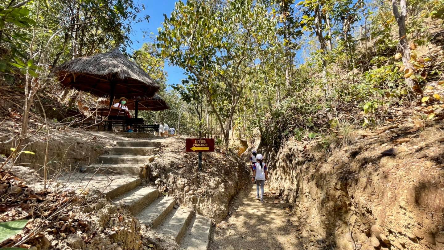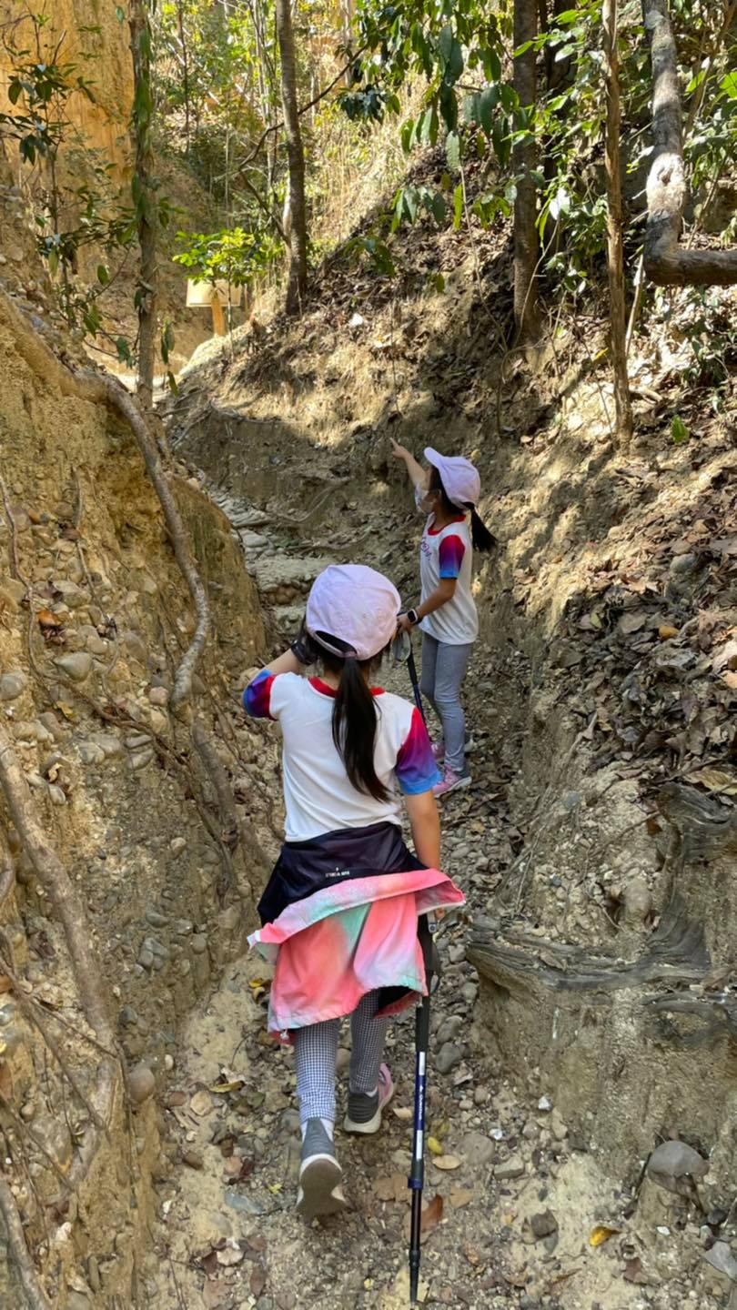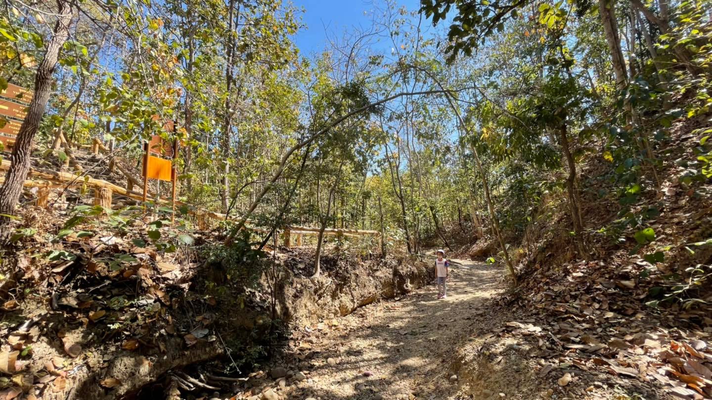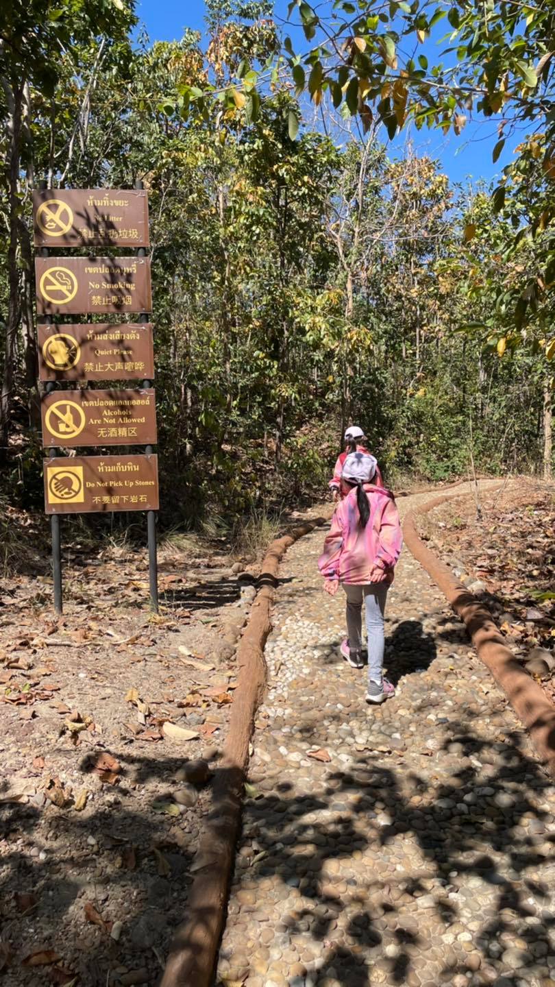 การเดินป่าสำรวจธรรมชาติเส้นนี้ไม่ได้เป็นป่าเขาสูงชัน เด็กเล็กเพิ่งหัดเดินป่าก็มาได้ค่ะ เส้นทางสั้นมาก แทบไม่ได้ขึ้นเขาอะไรเลย เดินสบายๆทางเดินเค้าทำดีมากกกกก จุดที่ชันก็จะมีบันไดกับราวให้จับ แม้พื้นจะเป็นกรวดหิน ใส่ผ้าใบมาก็โอเคค่ะ และป่าเป็นป่าเบญจพรรณมีร่มไม้ไม่มาก