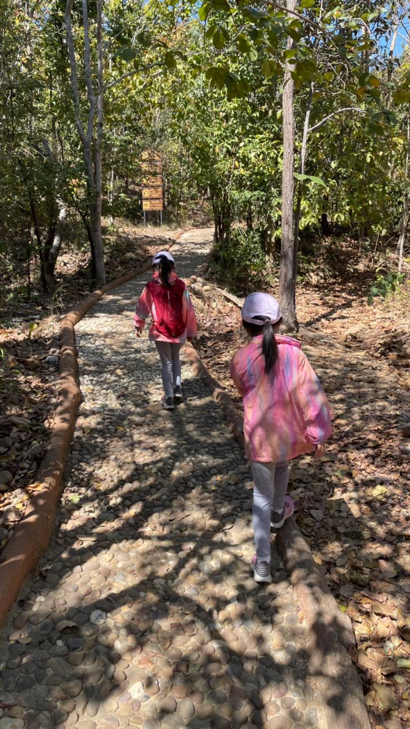ดังนั้นเราก็ขับรถต่อไปยังจุดจอดรถที่ 3 ตรงนี้ก็มีห้องน้ำค่ะ (สะอาดมากเช่นกัน) ก่อนเดินก็พาเด็กๆทำธุระส่วนตัวให้เรียบร้อย เพราะระยะทางที่เดินประมาณ 900 เมตร ใช้เวลาประมาณ 45 นาทีจะไม่มีห้องน้ำเลยค่ะ เส้นทางจะแบ่งขึ้นกับลง ทางขึ้นจะมีบันได ทางลงจะเป็นเส้นทางเดินแคบๆไม่ค่อยเจอแดด แต่อันที่จริงก็เดินสลับๆได้ค่ะเพราะมันตัดกันไปมา และไม่ได้ฟิกทางขนาดนั้น เจ้าหน้าที่แนะว่าถ้ามีเด็กให้เดินไป-กลับทางนี้จะเดินง่ายกว่าค่ะ (สนุกกว่าทางบันไดเยอะ 555 เหมือนได้ผจญภัยเลยแถมร่มรื่นกว่าด้วย)