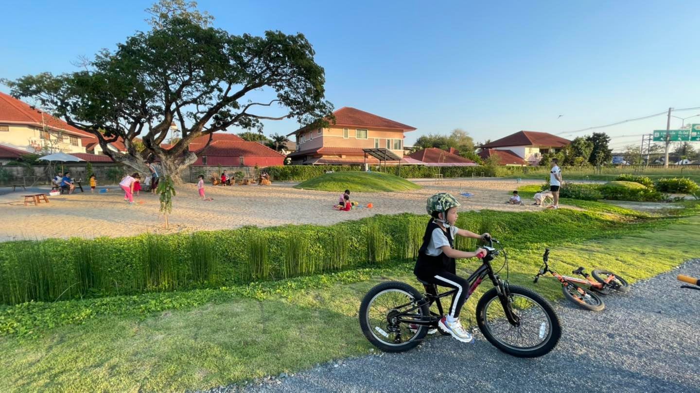 ที่นี่เป็นที่ดินของเอกชนที่มีแนวคิดนำที่ดินจากคุณทวดแก้วและคุณทวดคำเอ้ยมาสร้างเป็นที่สาธารณะให้ชาวเชียงใหม่ที่รักสุขภาพมาออกกำลังกายกันค่ะ แต่ที่แม่ปลื้มคือคิดถึงเด็กๆด้วยอ่ะค่ะ มีสนามเด็กเล่นให้เด็กๆด้วย บางทีสนามเด็กเล่นไม่ต้องมีอะไรมากแค่ต้นไม้ เนินดิน กองทรายเด็กๆก็วิ่งเล่นสนุกได้เองแล้วค่ะ