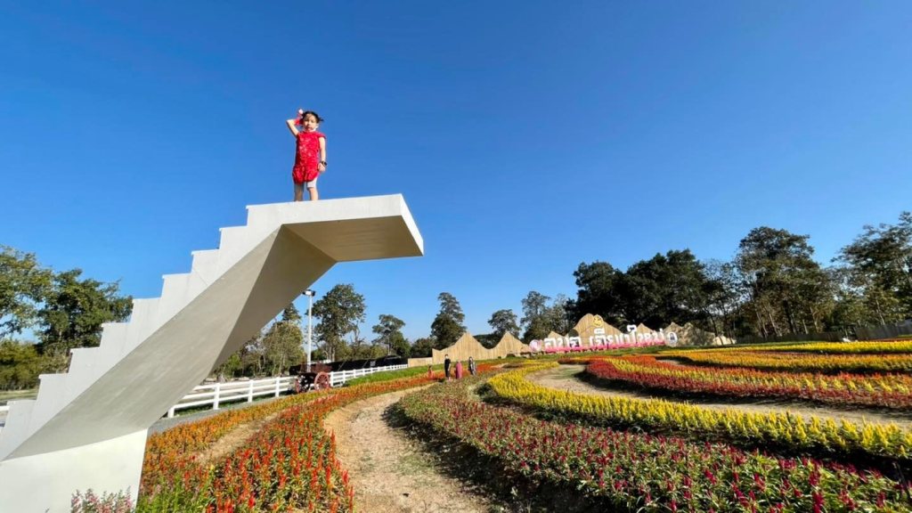 วันนี้แม่พาเด็กๆไปเดินเที่ยวมา ภายในงานมีจัดดอกไม้สวยๆ ทุ่งทิวลิป สวนกล้วยไม้ ดอกไม้เมืองหนาว ทุ่งดอกหงอนไก่หลากสี บันไดสวรรค์ รถบรรทุกที่ทำจากฟาง หรือเลือกถ่ายรูปคู่กับวิวดอกไม้สวยๆที่เยอะสุดๆ พื้นที่กว่า 27 ไร่ แถมถ่ายรูปติดวิวดอยสุเทพ สวยไปอี๊กกกก