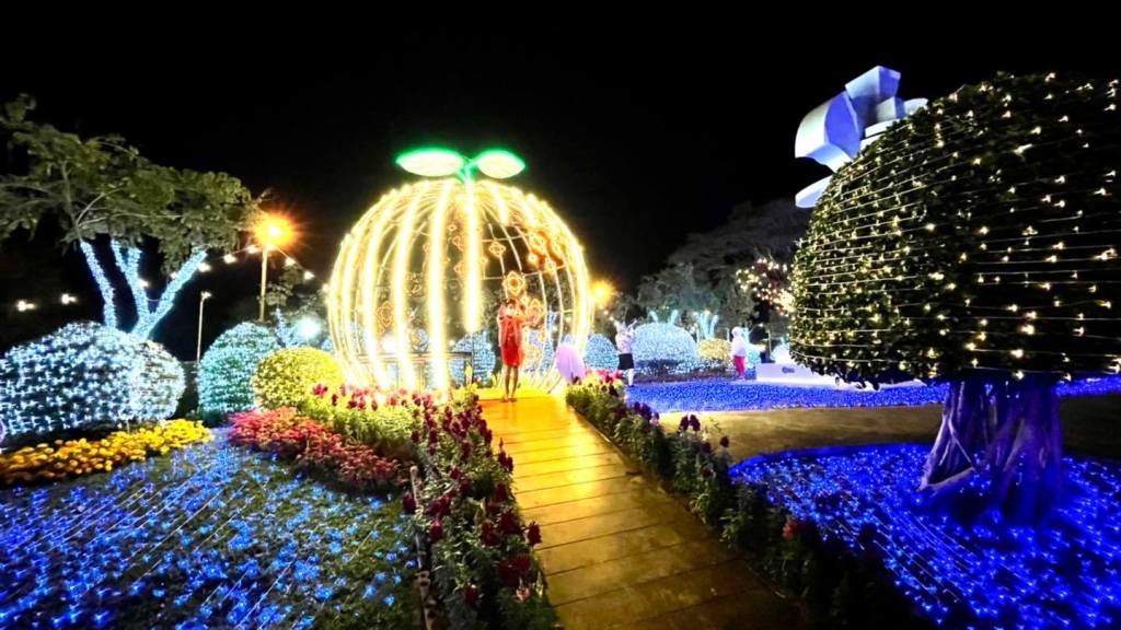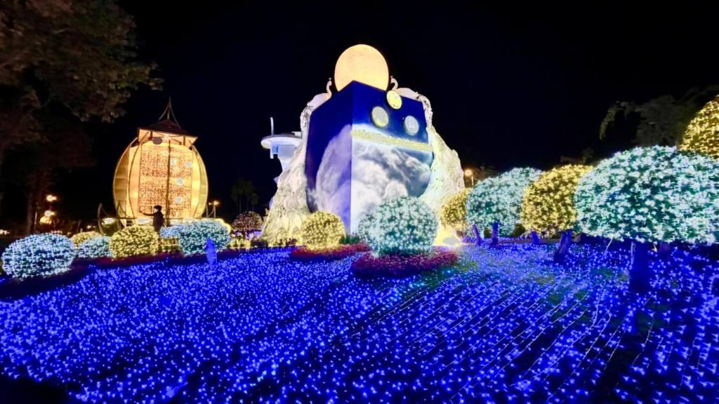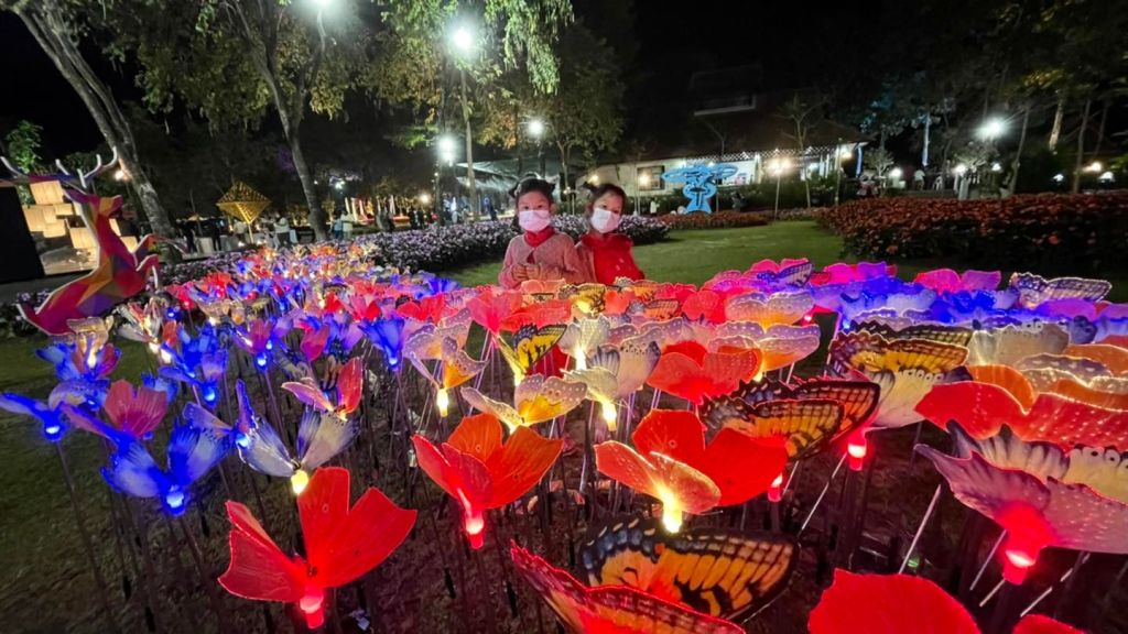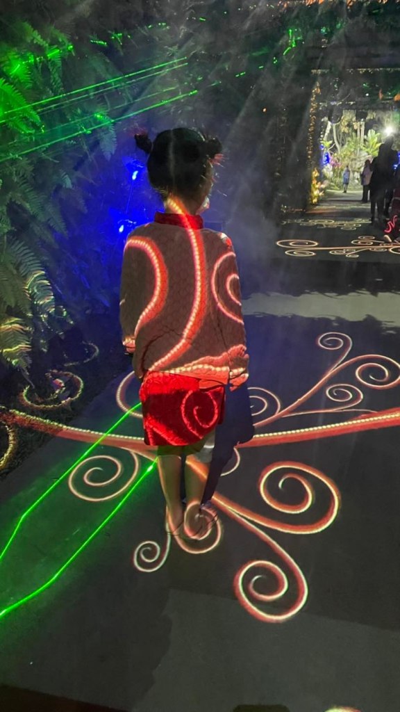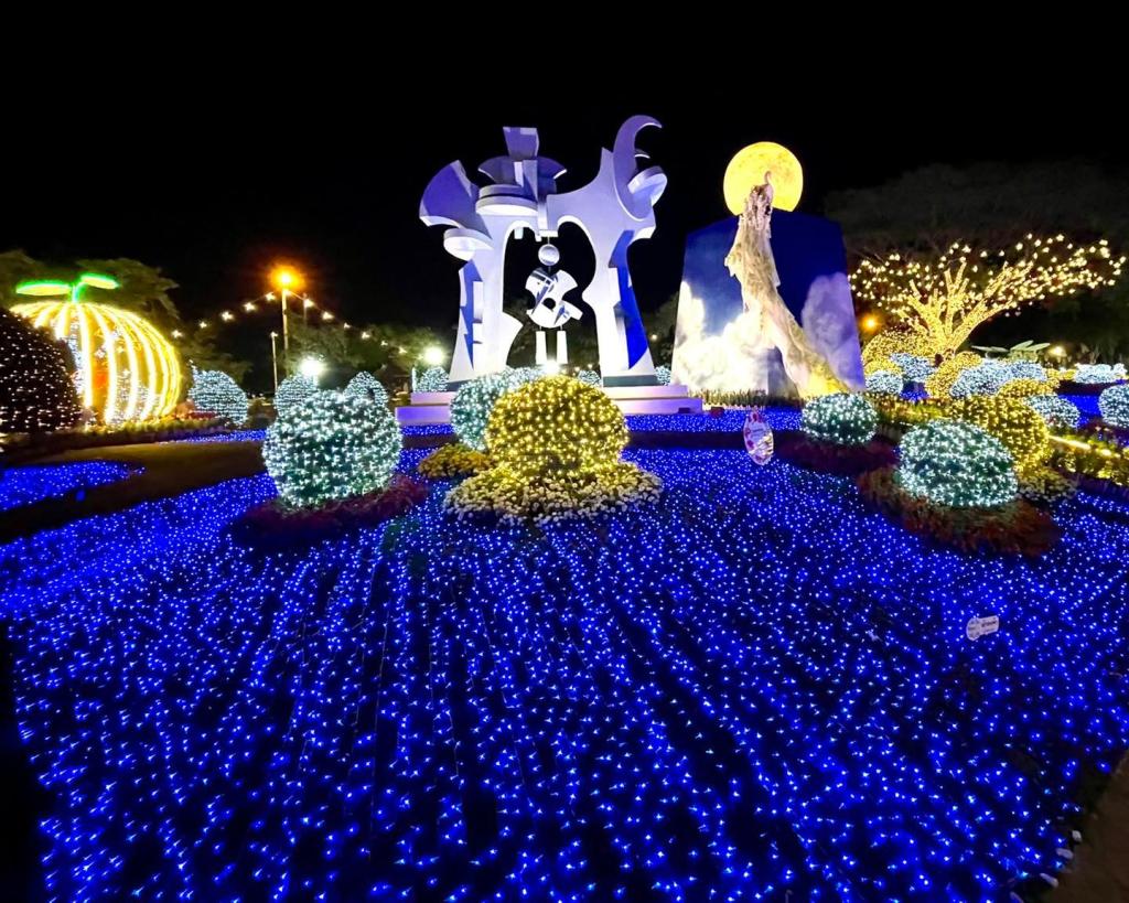 เพราะเค้าประดับไฟคือสวยระยิบระยับมากกกกกกก มีลูกเล่นเยอะทั้งเลเซอร์ ไฟตกแต่งประดับต้นไม้/ดอกไม้ หอชมวิว ซุ้มดอกไม้ที่มี แสง สี เสียง สวยมากค่ะ พลาดไปนี่เสียดายแทนจริงๆ