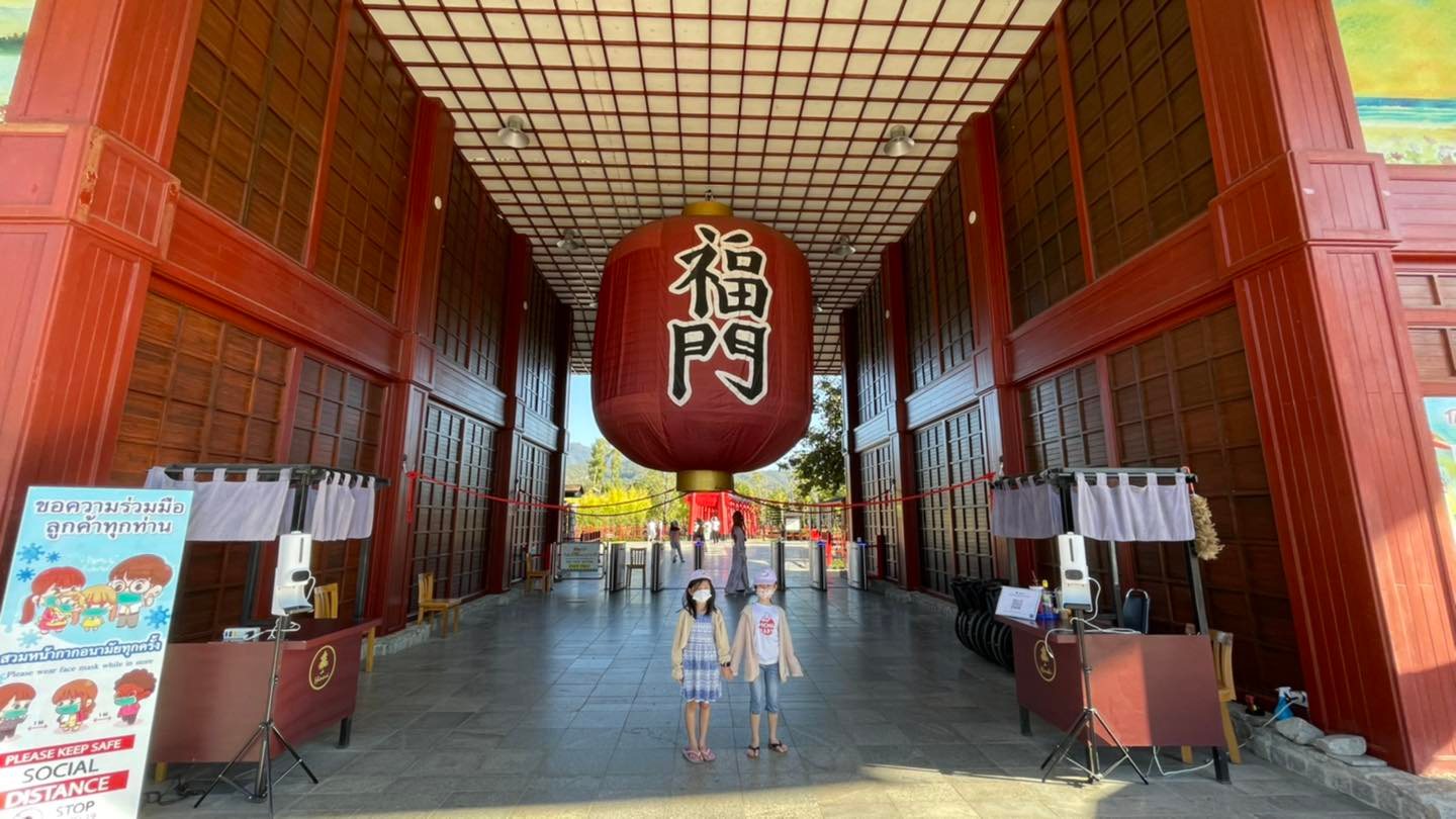 ขับมาถึงเห็นเสาโทริอิยักษ์แต่ไกลเลยค่ะ เป็นซุ้มประตูขนาดใหญ่สัญลักษณ์ของญี่ปุ่น บรรยากาศนี่คือใช่เลย!!! มีต้นสน บ้านเรือนแบบญี่ปุ่น มีโคมแดงหน้าทางเข้าเหมือนวัดเซ็นโซจิหรือวัดอาซากุสะ เจ้าหน้าที่ก็สวมชุดยูกะตะมาต้อนรับ เด็กๆเริ่มตื่นเต้นกันแล้วค่ะ จากนั้นก็ไปซื้อตั๋วเข้าชมค่ะราคาผู้ใหญ่ 80 บาท เด็กๆยังเข้าฟรี ![]()