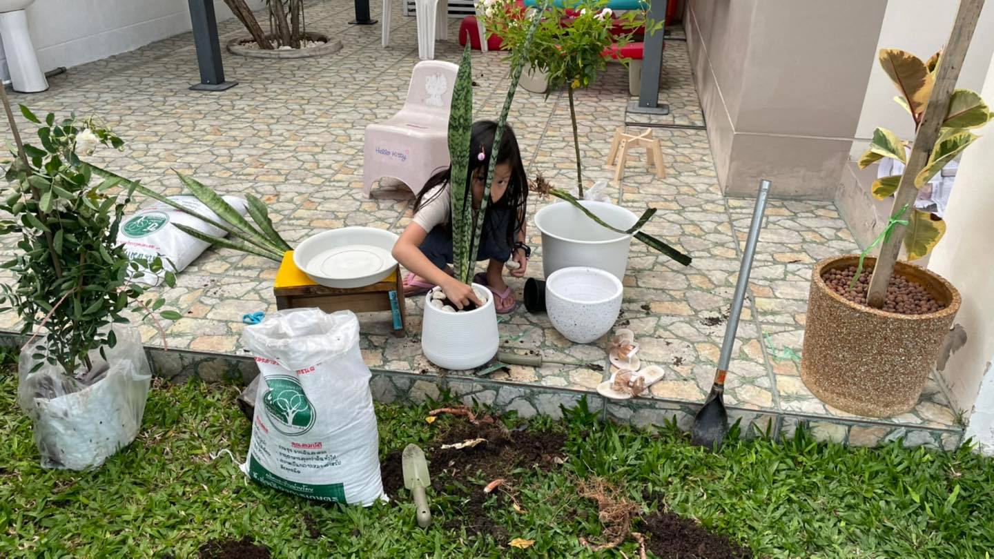 ปลูกต้นไม้เป็นการฝึกลูกๆให้รู้จักรอคอย ที่สำคัญคือเราได้ใช้เวลาร่วมกันคุยกันค่ะ