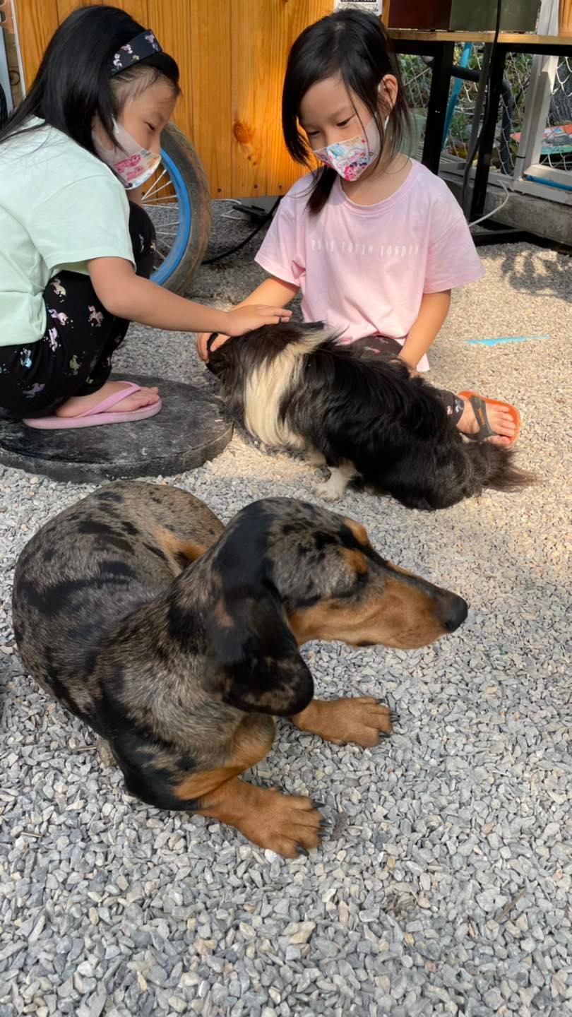เด็กๆลงรถปุ๊บน้องหมาเดินกระดิกหางต้อนรับเลยค่ะ เริ่มจากดัชชุนก็มีชิวาวามาเล่นอีกหลายตัว