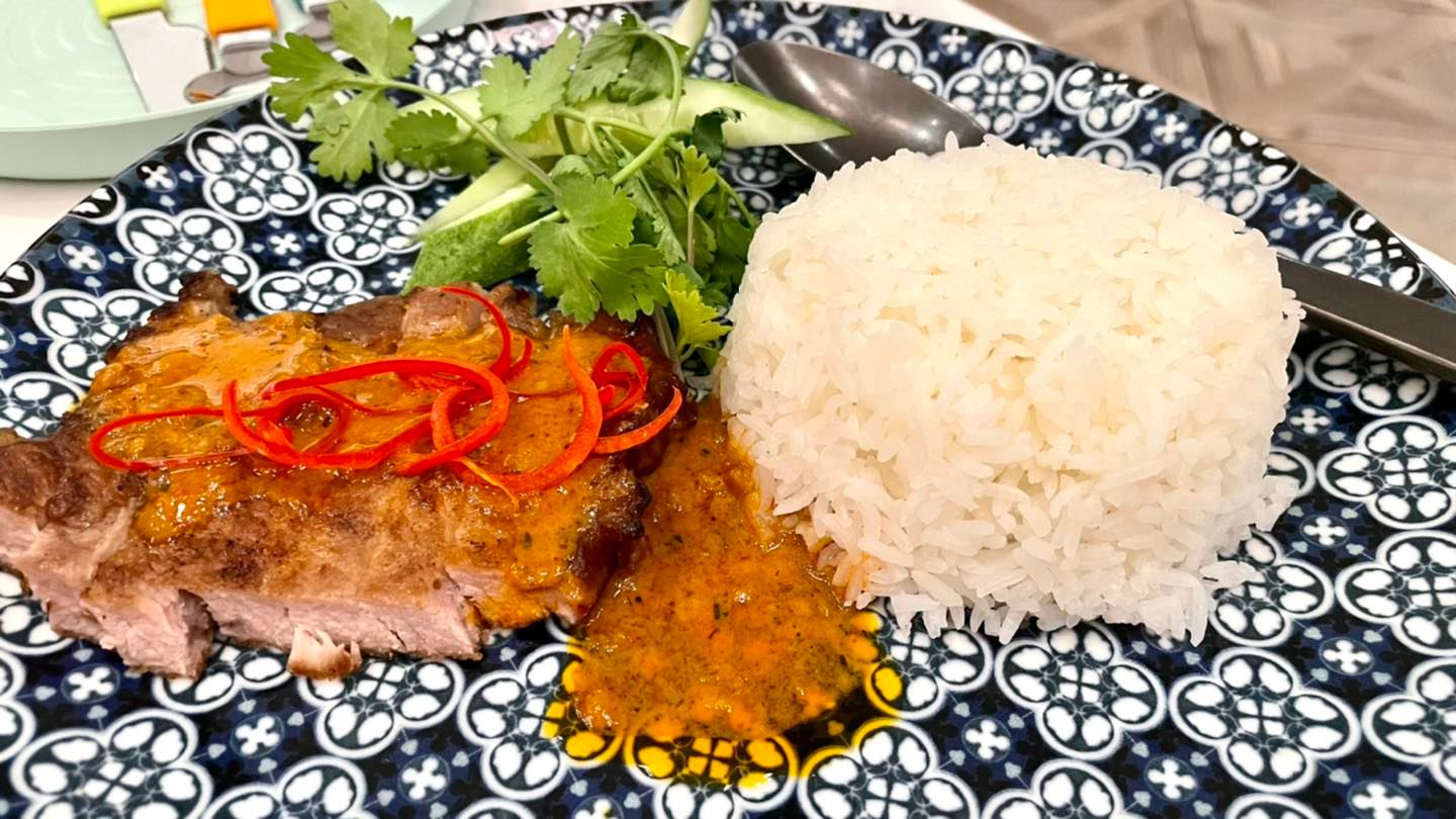 เรื่องกินก็ไม่มีปัญหาค่ะ มี 7-11 หน้าโรงแรมเลย จะไปซื้อนม ขนม ของจุกจิก ลืมอะไรก็เดินลงมาซื้อได้ 24 ชม. ยัง!!! ยังไม่พอ มีร้านอาหาร Tr. Eat by Saneh Jaan ที่มีมิชชาลินการันตี อาหารอร่อยมากกกกก หรือจะสั่งขึ้นมาทานที่ห้องก็ได้ค่ะ แม่สั่งขนมจีนแกงเขียวหวานไก่ไป 3 มื้อ 555+ คือชอบมากกกก ![]()