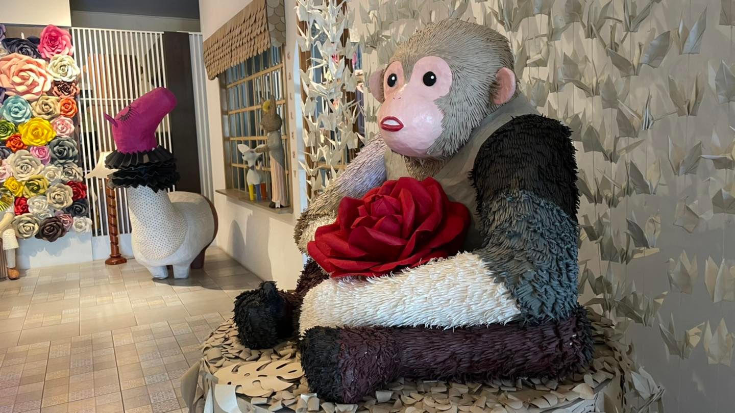 ที่เด็กๆติดใจนอกจากความอร่อยและหน้าตาขนมที่น่ารักแล้ว ที่นี่ยังจัดแสดงผลงานศิลปะที่ทำจากกระดาษมากมาย จึงมีมุมถ่ายรูปเยอะมากๆ ลูกก็เดินดูอย่างตื่นตาตื่นใจได้ไอเดียเยอะมากเอามาต่อยอดที่บ้าน เอากระดาษมาตัดมาปั้นสนุกๆ ไม่น่าเชื่อว่ากระดาษธรรมดาๆจะนำมาสร้างสรรค์ผลงานสวยๆได้เยอะเลยค่ะ