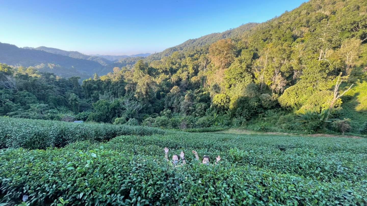เสร็จจากไปเก็บองุ่นที่ไร่อาร์มิลท์ตรา ไหนๆก็ขับมาแล้วแวะเที่ยวต่ออีกนิดละกันที่ ไร่ชาลุงเดช เนื่องจากอยู่ใกล้ๆกันแค่ 2 km เองค่ะ ที่ไร่นี้จะเป็นแหล่งท่องเที่ยวชุมชน วิวสวยม๊ากกกกกก สวยแบบจัดเต็มยิ่งถ้าไปเช้าๆมีหมอกบางๆน่าจะฟินกว่านี้ คนก็ค่อนข้างเยอะ แถมมีที่พักแบบ homestay สวยๆด้วยค่ะ ใครชอบบรรยากาศดอย ไร่ชาสวยๆลองมาเที่ยวถ่ายรูปได้ค่ะ แต่ต้นชาที่นี่สูงกว่าลูกเยอะ แม่กะจะได้รูปสวยๆลูกจมหายไปในดงชาค่ะ ![]()
