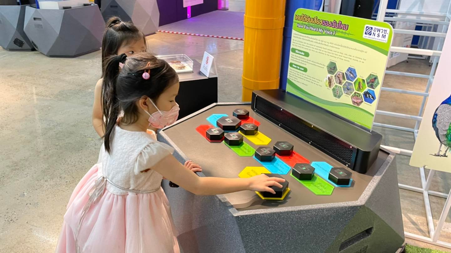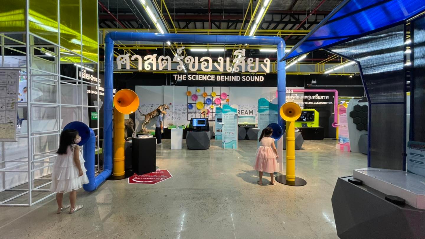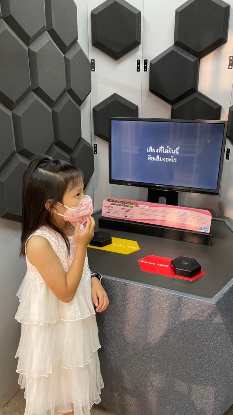 วันนี้มาเปิดห้องเรียนรู้วิทยาศาสตร์ที่ NSM กรุงเทพค่ะ อยู่ที่ The street รัชดา เพราะเรามีเวลาน้อยและที่คลองห้าอยู่ไกลที่พักเราไปหน่อย แวะมาที่นี่จะใกล้และสะดวกกว่า ตอนนี้มีนิทรรศการใหม่ชื่อ “Art science in sound exhibition” หรือ ศาสตร์ศิลป์ในเสียง ได้เรียนรู้เรื่องเสียง หูของมนุษย์ ประกอบด้วยอะไรบ้าง เสียงในธรรมชาติ เสียงสัตว์ต่างๆ การเกิดคลื่นเสียง การประยุกต์นำเอาเทคโนโลยีทางเสียงมาใช้งาน และอื่นๆอีกมากมาย รวมถึง interactive exhibition ให้เด็กๆได้เล่น มีเกม แสง สี เสียงชวนให้นิทรรศการไม่น่าเบื่อค่ะ เด็กๆเข้าฟรีด้วยนะคะ