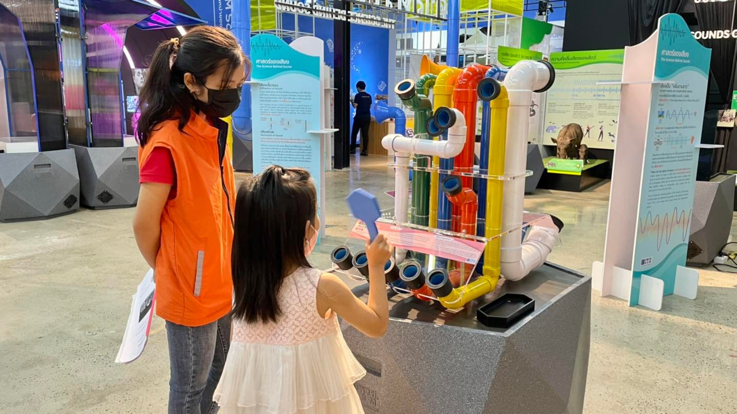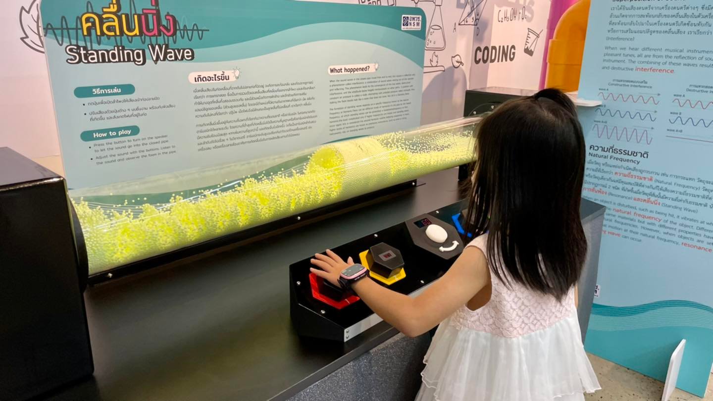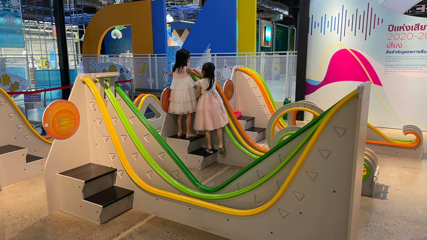 วันนี้มาเปิดห้องเรียนรู้วิทยาศาสตร์ที่ NSM กรุงเทพค่ะ อยู่ที่ The street รัชดา เพราะเรามีเวลาน้อยและที่คลองห้าอยู่ไกลที่พักเราไปหน่อย แวะมาที่นี่จะใกล้และสะดวกกว่า ตอนนี้มีนิทรรศการใหม่ชื่อ “Art science in sound exhibition” หรือ ศาสตร์ศิลป์ในเสียง ได้เรียนรู้เรื่องเสียง หูของมนุษย์ ประกอบด้วยอะไรบ้าง เสียงในธรรมชาติ เสียงสัตว์ต่างๆ การเกิดคลื่นเสียง การประยุกต์นำเอาเทคโนโลยีทางเสียงมาใช้งาน และอื่นๆอีกมากมาย รวมถึง interactive exhibition ให้เด็กๆได้เล่น มีเกม แสง สี เสียงชวนให้นิทรรศการไม่น่าเบื่อค่ะ เด็กๆเข้าฟรีด้วยนะคะ