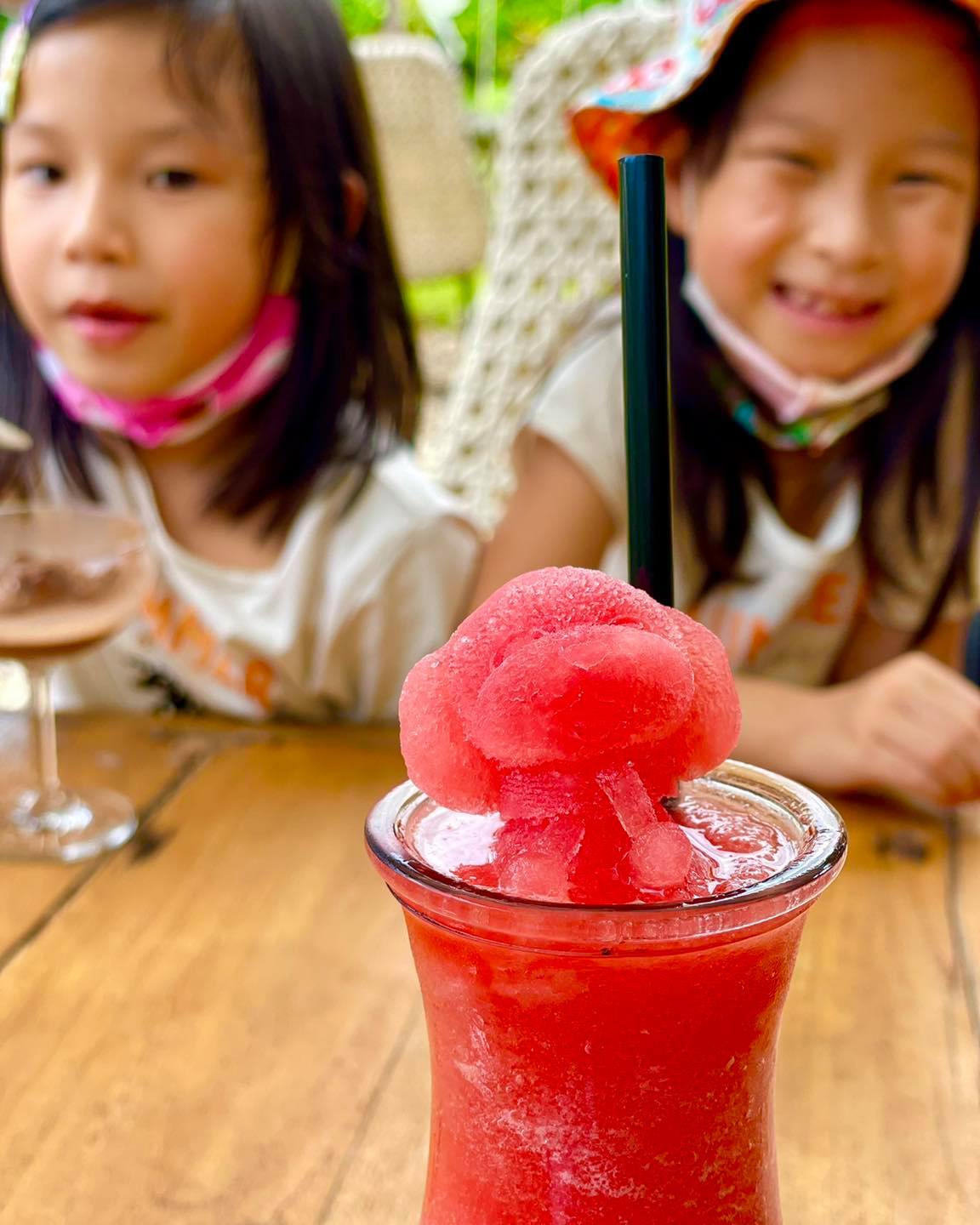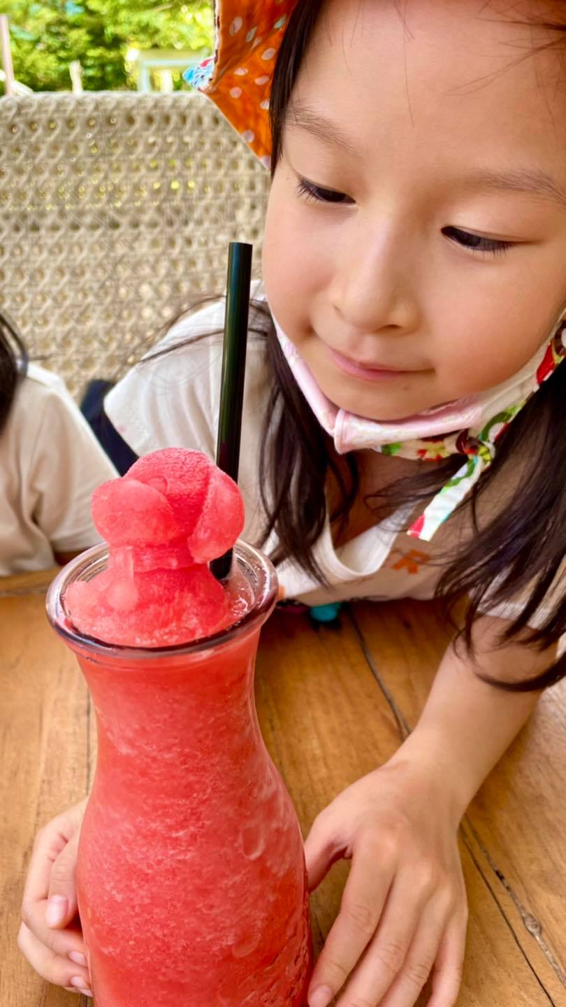 ถือว่ามาที่นี่จะได้พักผ่อนอย่างสงบจริงๆ ลูกก็เล่นของลูกไปเงียบๆ พอเบื่อก็วิ่งมาทานไอติมเย็นๆ อาหารที่นี่ก็อร่อยทุกอย่างค่ะ เรามีสั่งแตงโมปั่นที่ตกแต่งด้วยตุ๊กตาน้ำแข็งรูปหมาน่ารักๆ เห็นปุ๊บนี่เด็กๆตื่นเต้นมากกกกก แต่กัดคอขาดนี่ลูกแอบสะเทือนใจเล็กๆ สงสารหมาน้ำแข็งแต่ก็บอกอร่อยดีค่ะ 5555+ มีจะขอสั่งเพิ่มอีก ![]()