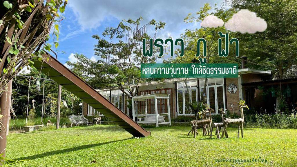 ) การที่ต้นไม้เยอะนี่ช่วยลดความร้อนได้ดีทีเดียวค่ะ และเราเลือกมาที่ร้านพราว ภู ฟ้า แม่ผ่อนคลายมากกกกกก เพราะเค้ามีมุมสนามเด็กเล่นเล็กๆ สไลเดอร์ บ้านต้นไม้ ชิงช้า และกองทรายให้เด็กๆได้เล่นระหว่างแม่พักอ่านหนังสือ ![]()