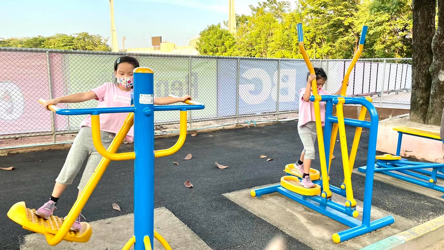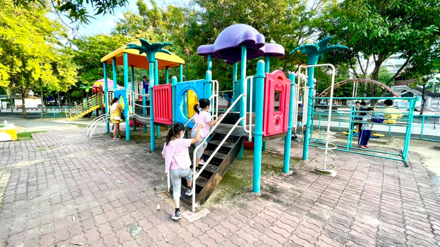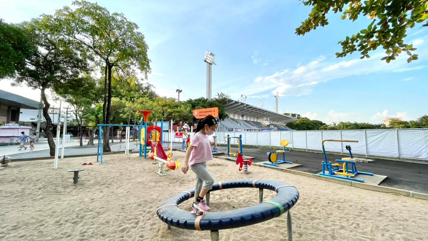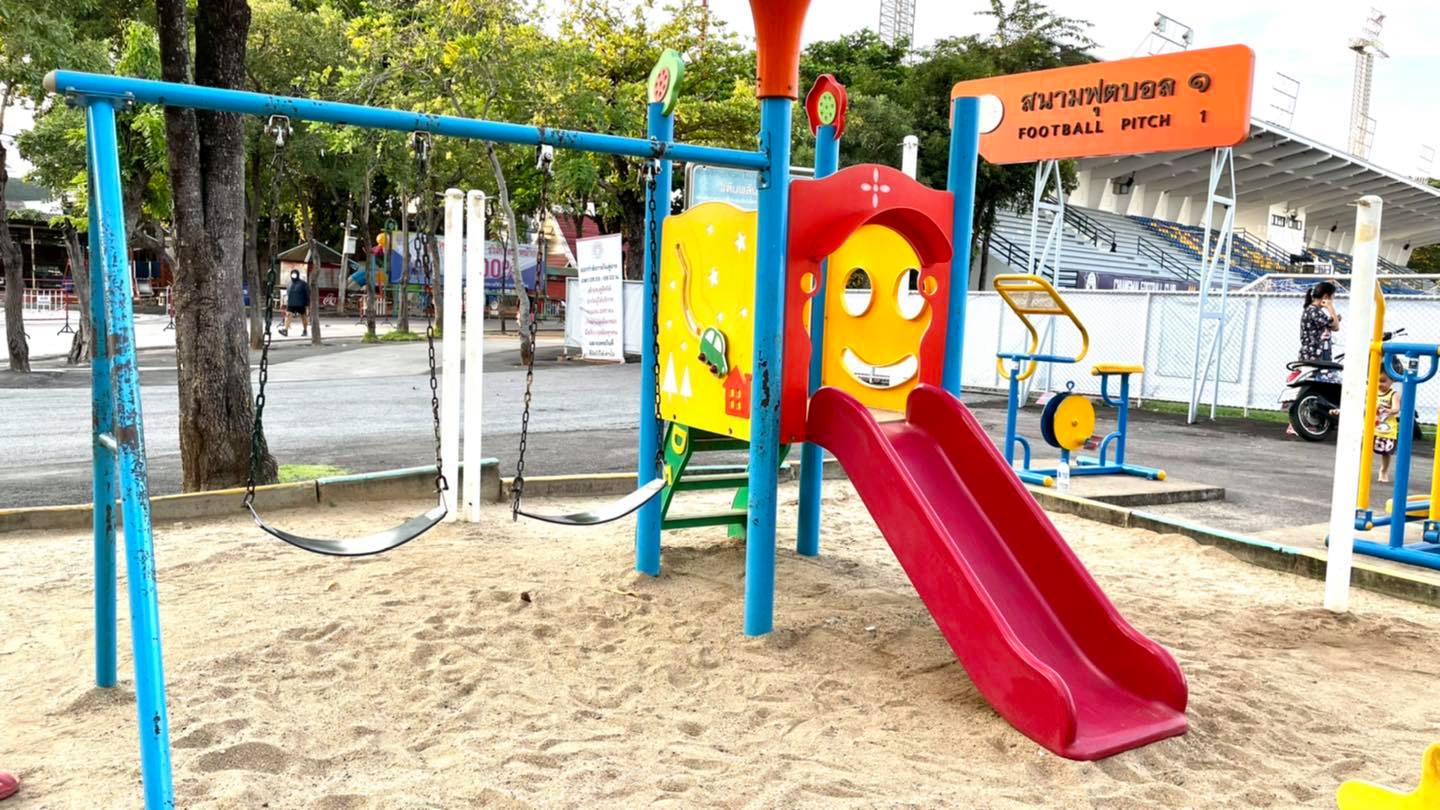 ที่นี่มีสนามเด็กเล่น 2 จุด จุดนี้เป็นสนามใหญ่อยู่ด้านหน้าสุดติดสนามฟุตบอล มีเครื่องเล่นสนาม ชิงช้า สไลเดอร์ อุปกรณ์ปีนป่าย หมุดกระโดด ทรงตัว เครื่องออกกำลังกายผู้ใหญ่ บาร์โหนต่างๆ ขอเล่นต่อเรื่อยเลยไม่อยากกลับบ้าน แถมบริการเล่นฟรีไม่มีค่าใช้จ่าย เด็กๆได้วิ่งเล่นออกกำลังกายสนุกๆค่ะ