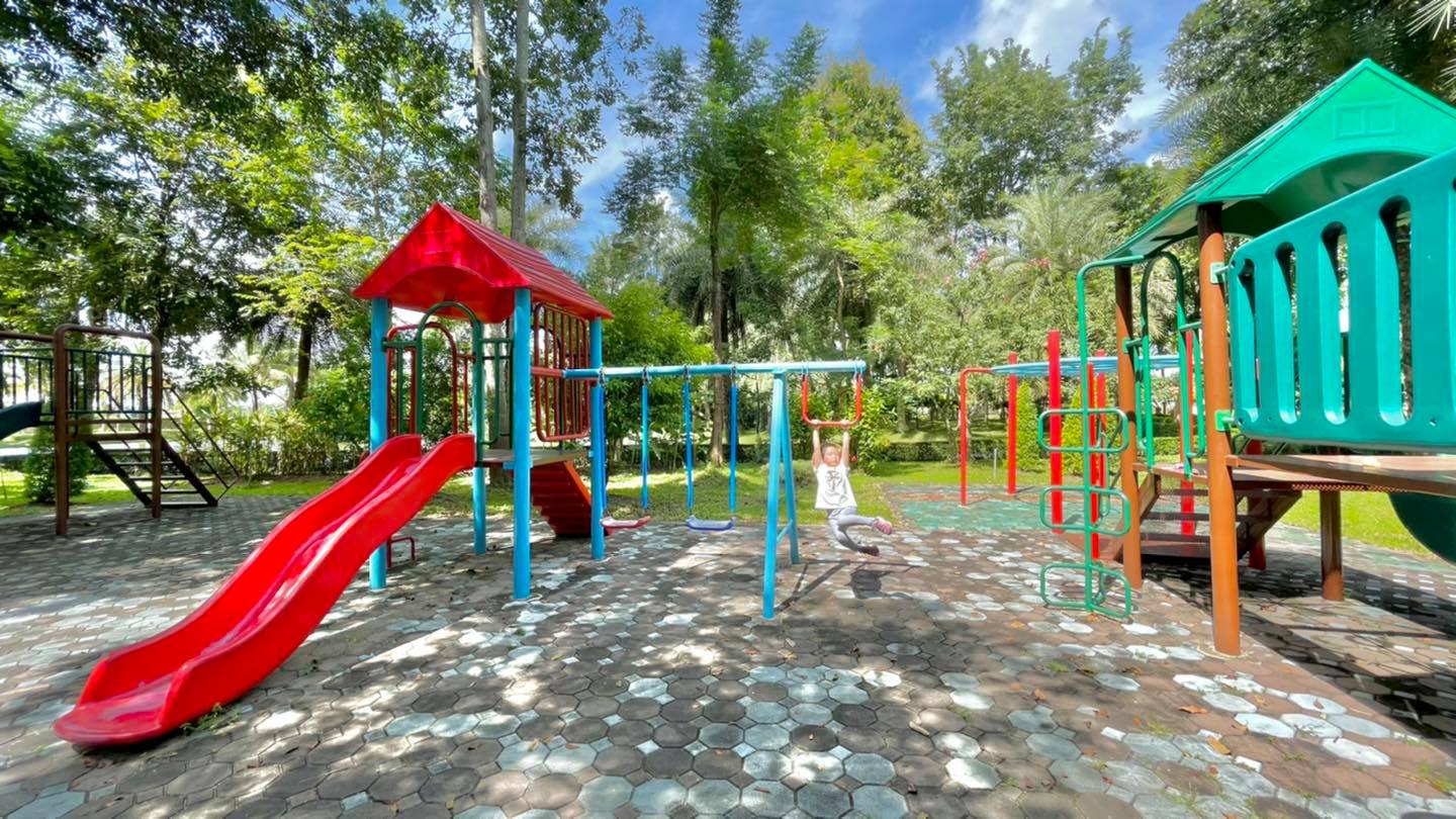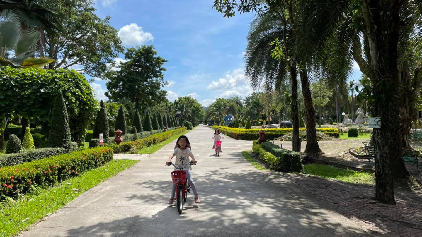บางช่วงของที่นี่จะร้อน แต่ส่วนใหญ่จะร่มรื่นค่ะ ปั้นจักรยานเที่ยวนี่สนุกดีนะคะ อยากจอดพักตรงไหนก็อิสระ แถมได้ออกกำลังกายด้วย กังวลแค่เรื่องยุงแต่เราพ่นยากันยุงแบบเต็มพิกัด วันนี้ลูกเลยไม่โดนยุงกันสักแผลค่ะ 555 แต่ครั้งนี้ยุงก็น้อยกว่าเดิมด้วยค่ะ แถมมีเครื่องเล่น สนามเด็กเล่นสนุกๆมากขึ้น เด็กๆเที่ยวเพลินมาก แทบไม่อยากกลับเลย