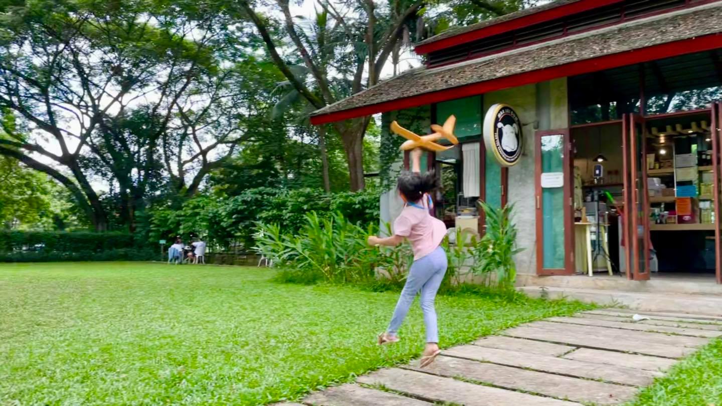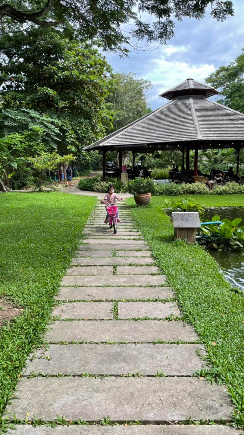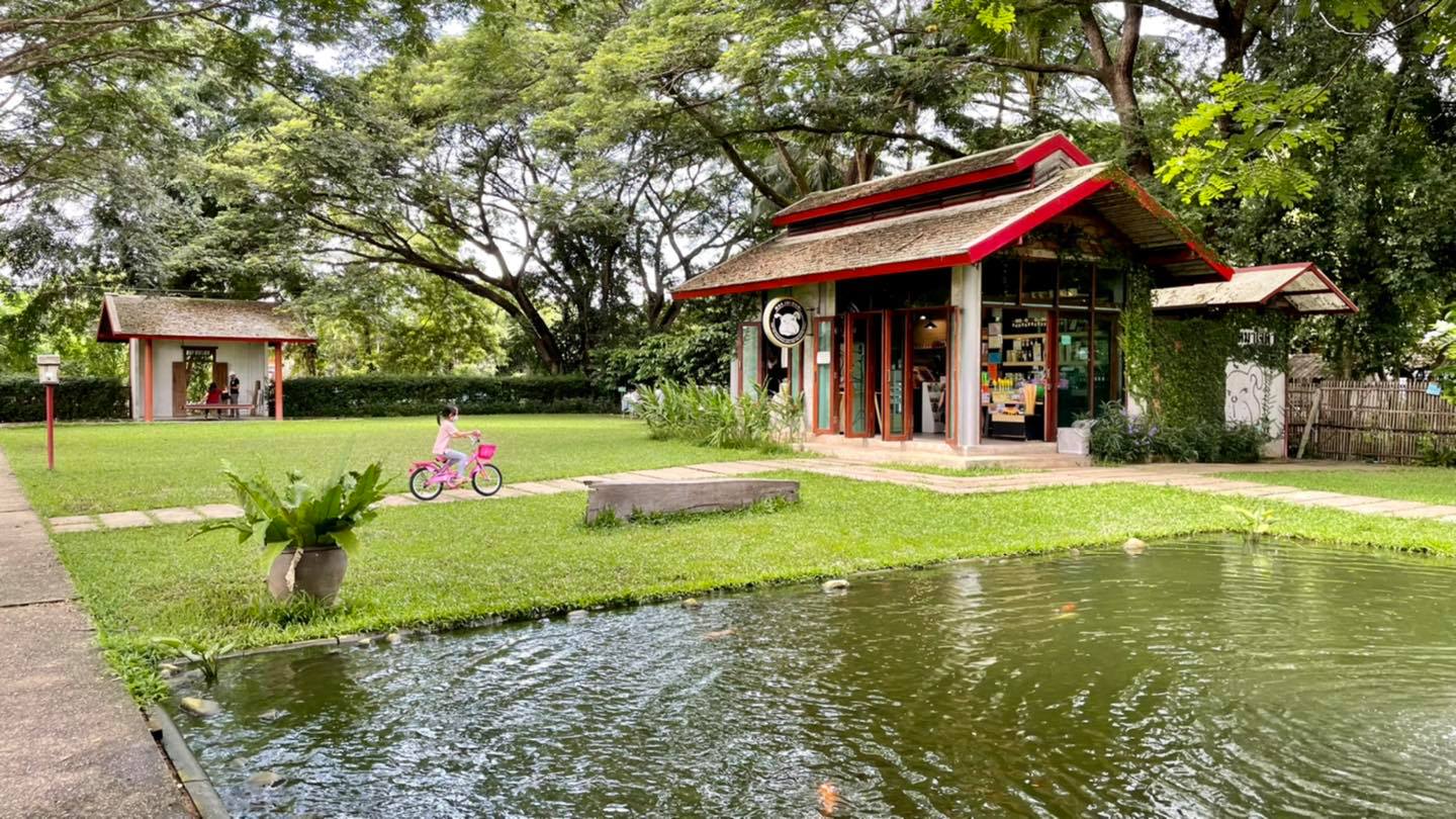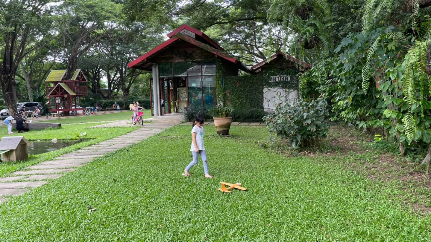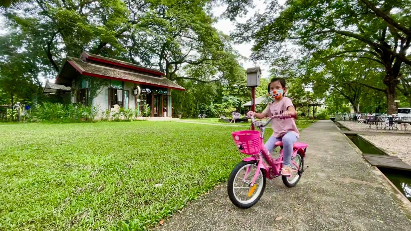 ร้านจะมีพื้นที่ลานกว้าง ต้นไม้ร่มรื่น มีถนนเล็กๆให้ปั่นจักรยาน ขี่สกุตเตอร์ จักรยานขาไถ (นำมาเองนะคะ)
